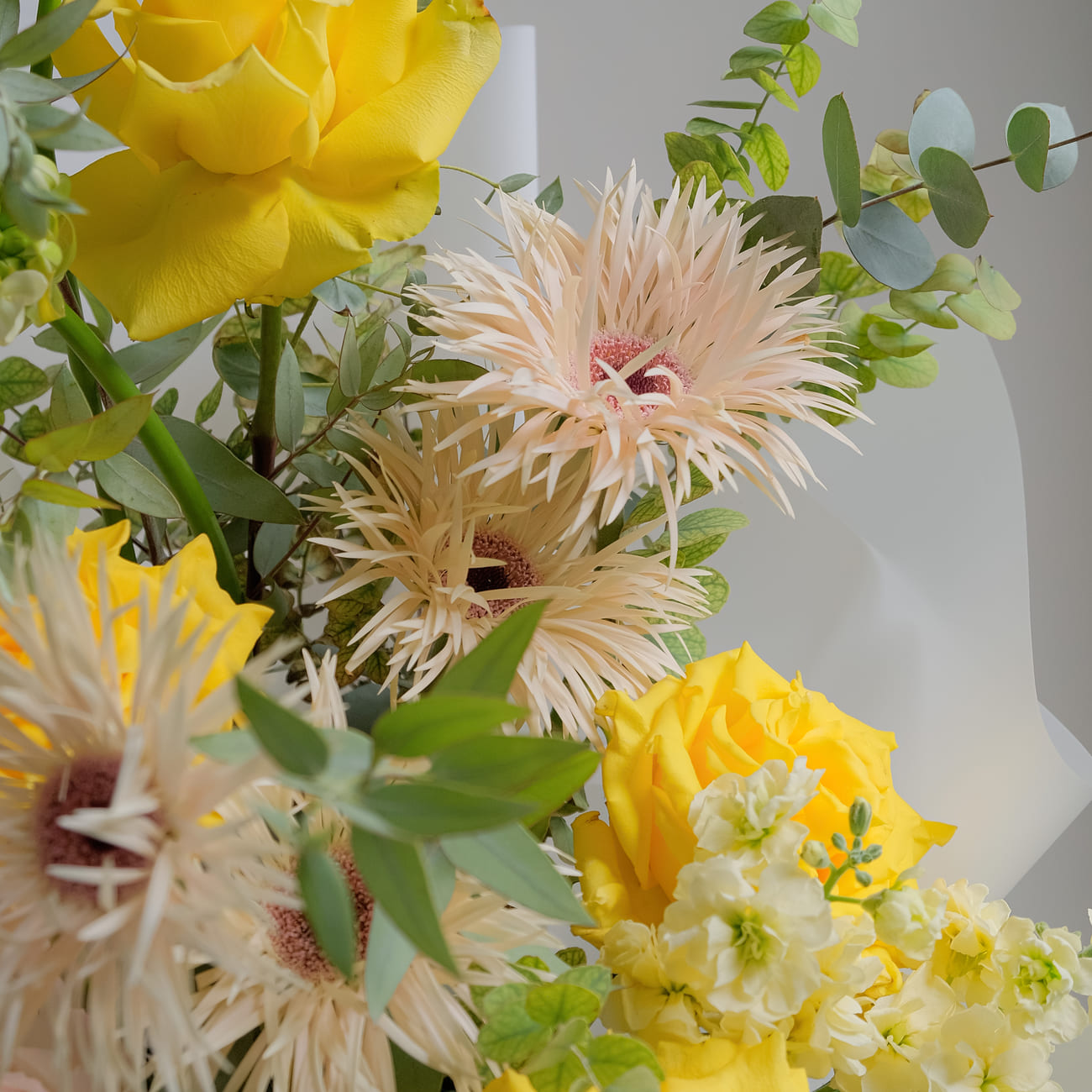 Для продления жизни цветам, рекомендуем поставить букет в прохладном месте, вдали от солнечных лучей.
