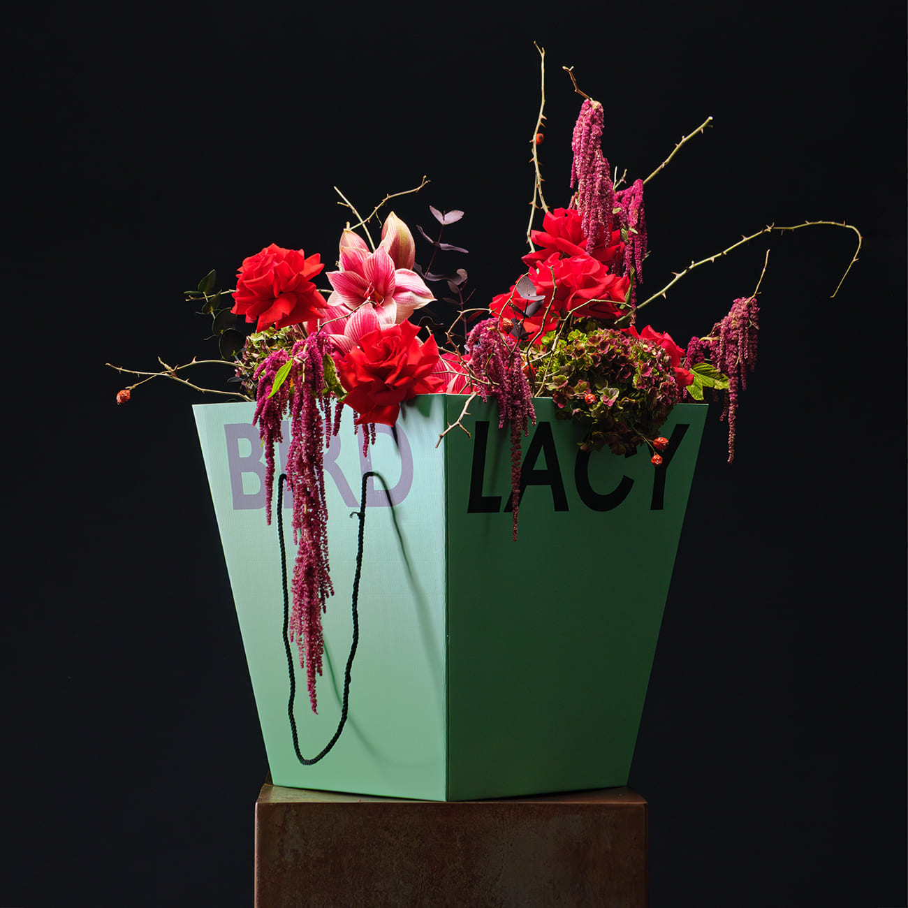 Свежие цветы от Lacy Bird доставляются в фирменной упаковке, которую необходимо снять при установке в вазу. Не срезайте ленту, связывающую букет для сохранения формы.