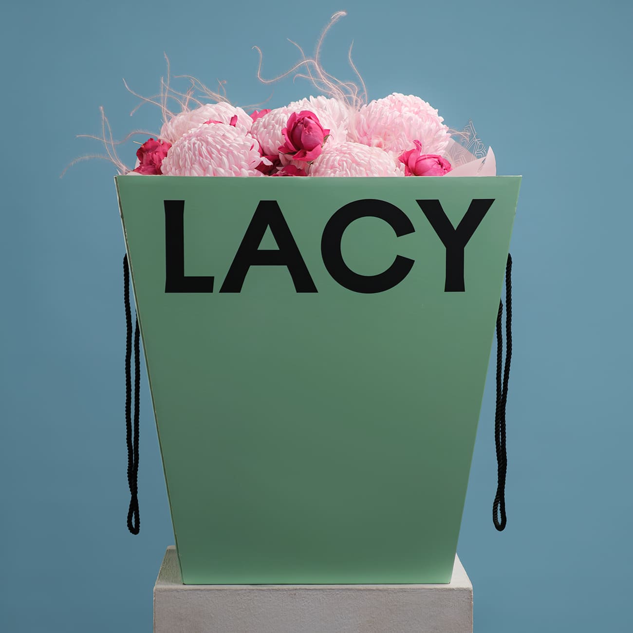 Свежие цветы от Lacy Bird доставляются в фирменной упаковке, которую необходимо снять при установке в вазу. Не срезайте ленту, связывающую букет для сохранения формы.