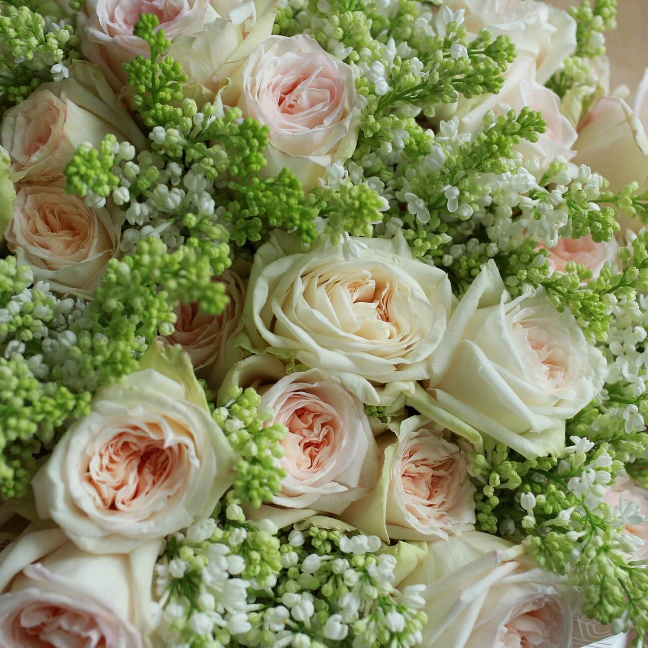 Свежие цветы от Lacy Bird доставляются в фирменной упаковке, которую необходимо снять при установке в вазу. Не срезайте ленту, связывающую букет для сохранения формы.