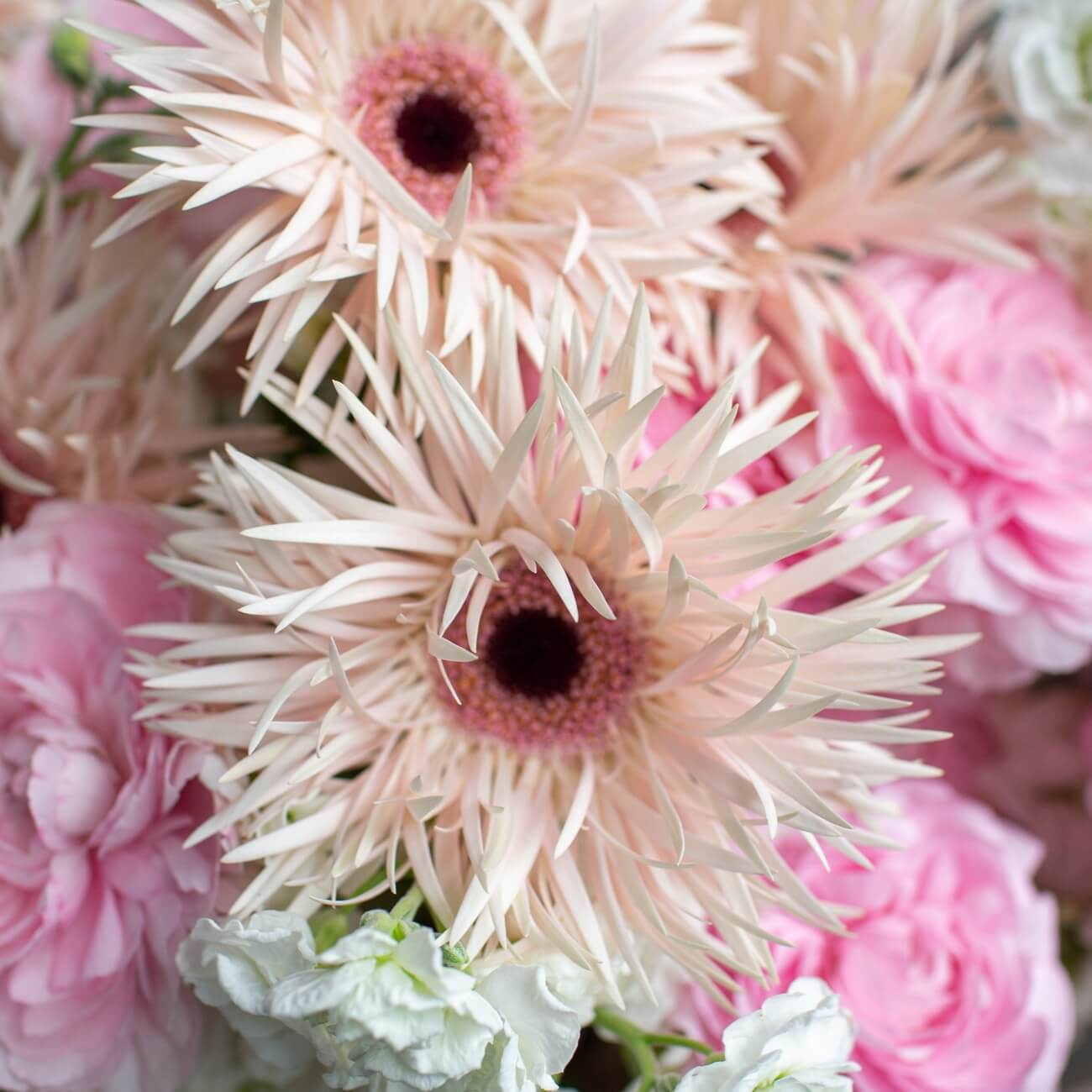 Свежие цветы от Lacy Bird доставляются в фирменной упаковке, которую необходимо снять при установке в вазу. Не срезайте ленту, связывающую букет для сохранения формы.