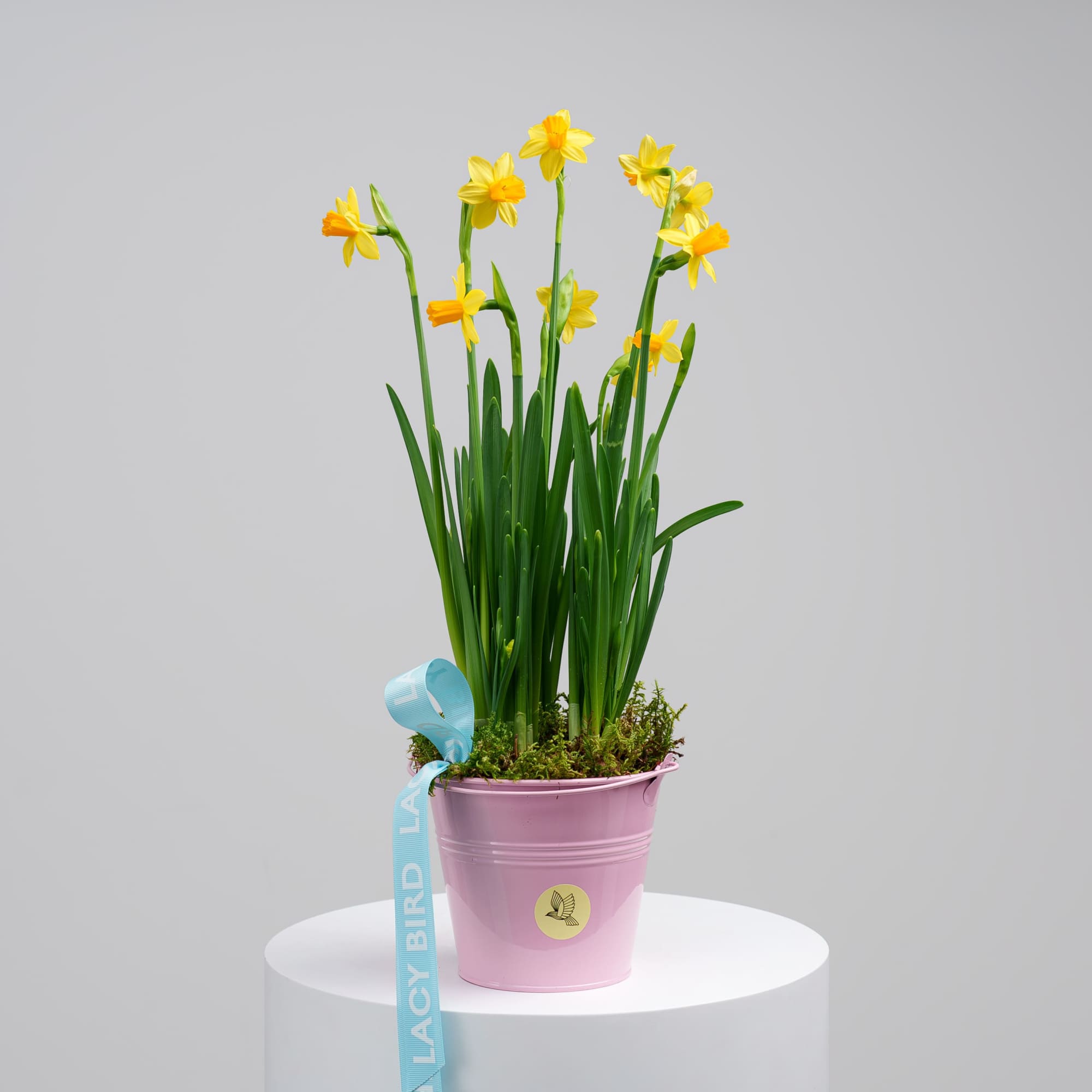 Свежие цветы от Lacy Bird доставляются в фирменной упаковке, которую необходимо снять при установке в вазу. Не срезайте ленту, связывающую букет для сохранения формы.