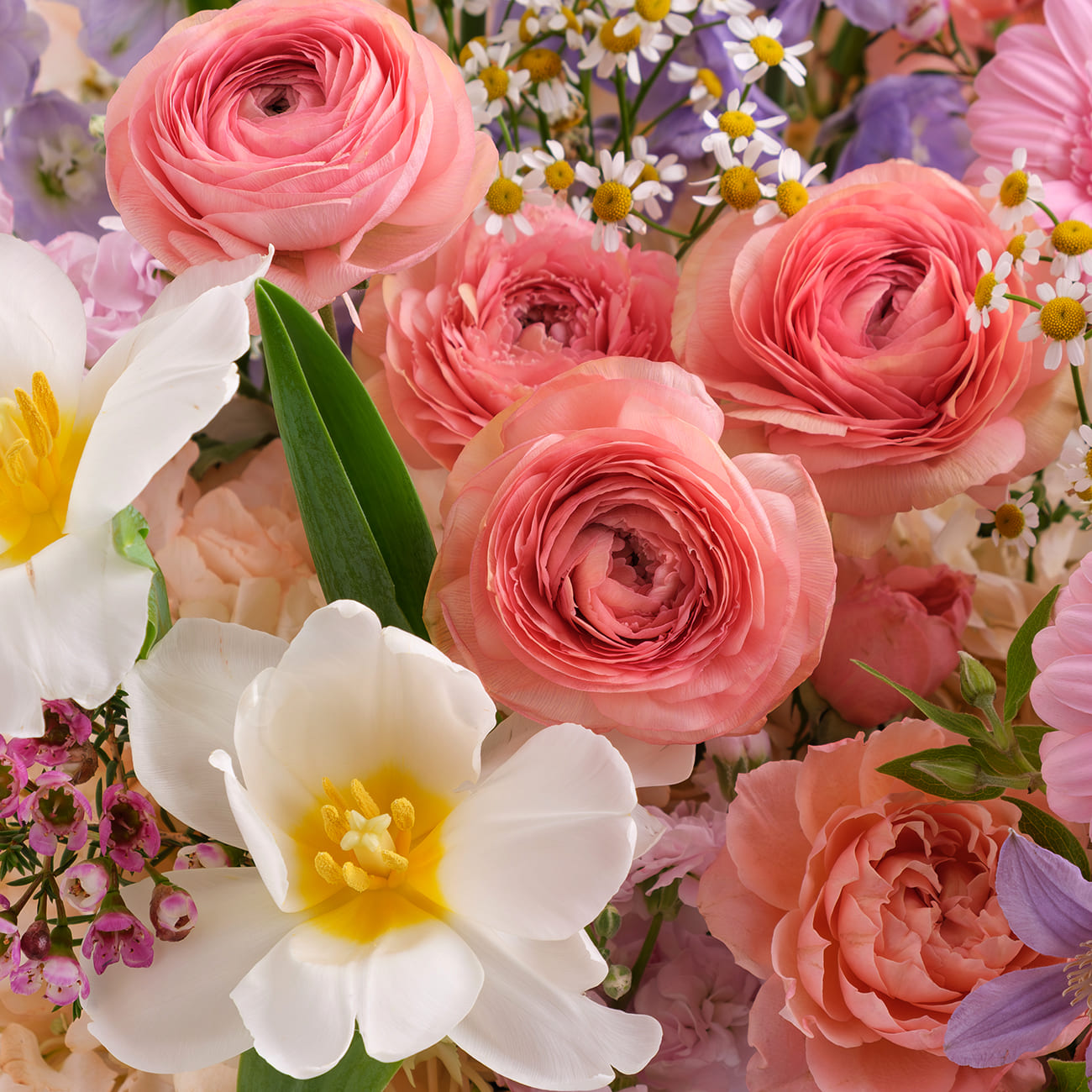 Для продления жизни цветам, рекомендуем поставить букет в прохладном месте, вдали от солнечных лучей.