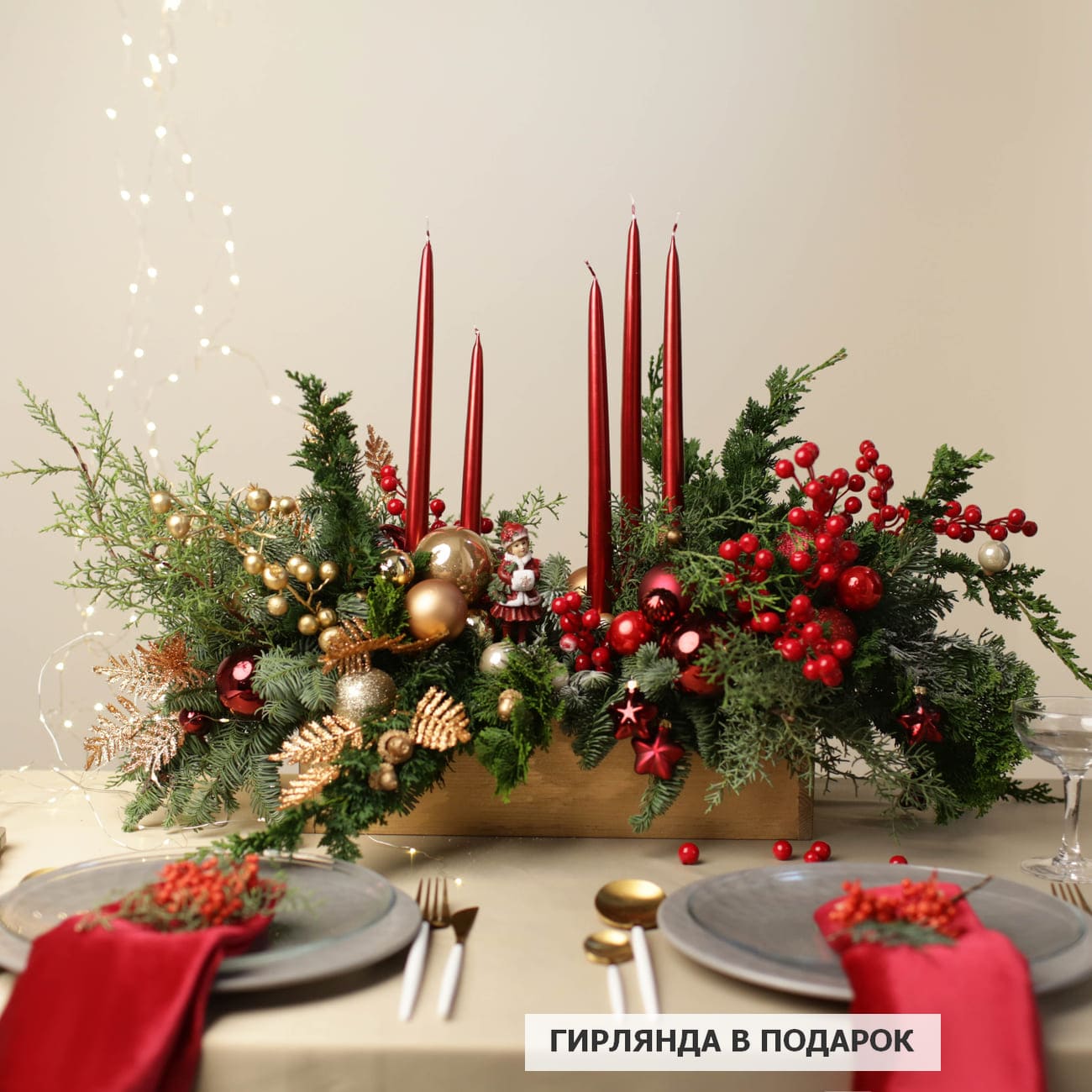 «Красно-золотая классика» станет великолепным украшением вашего дома или идеальным подарком для близких, наполняя каждый уголок теплом и радостью новогодних праздников.