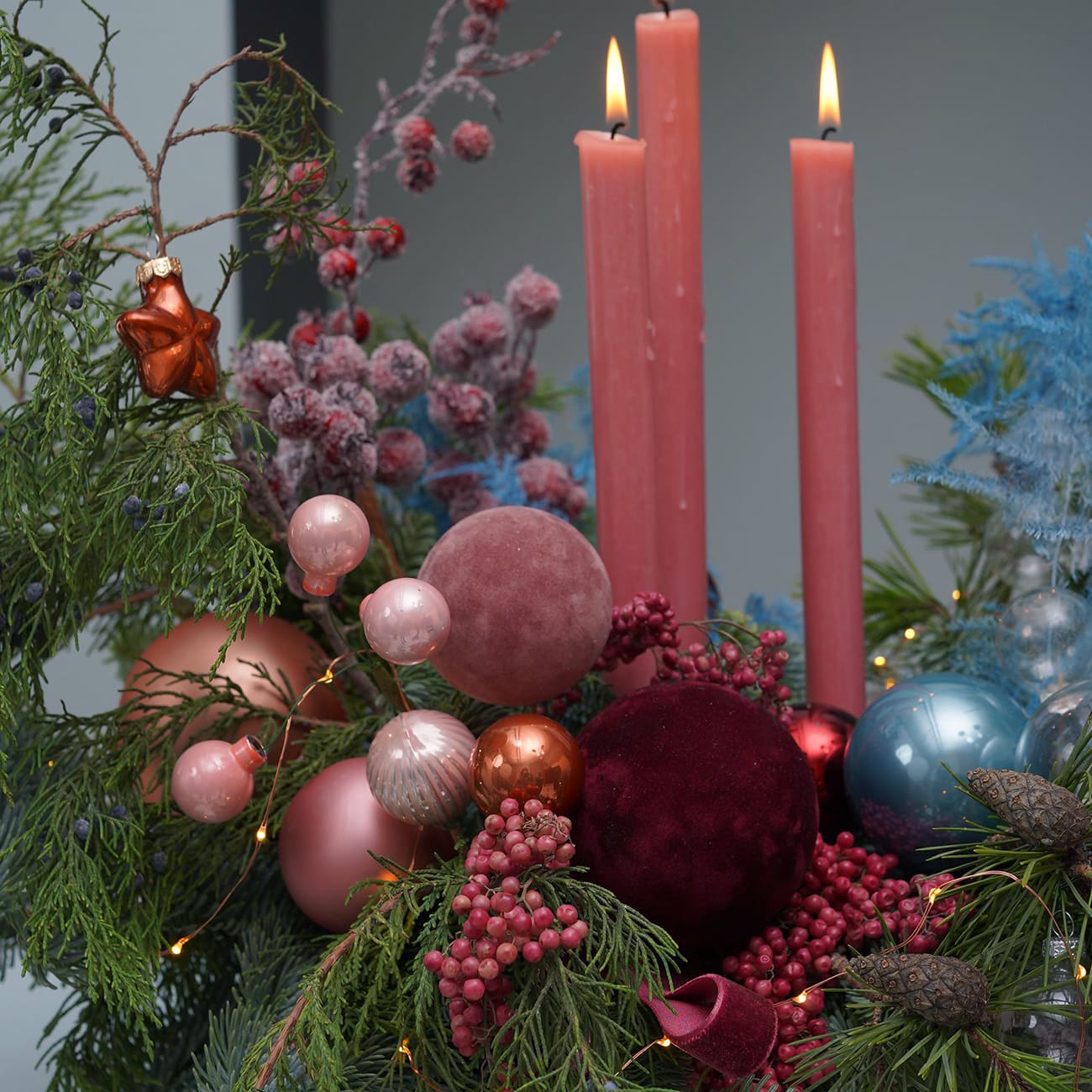 Каждая композиция/елка или венок упакованы для безопасной транспортировки. Достаньте композицию из упаковки, взяв ее за дно, чтобы не повредить. Не оставляйте композицию в закрытой упаковке надолго, чтобы там не образовался конденсат.