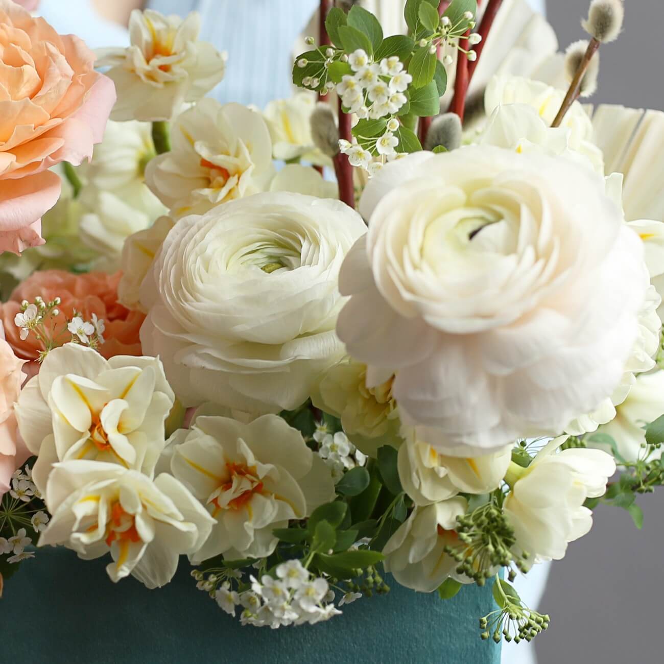 Свежие цветы от Lacy Bird доставляются в фирменной упаковке, которую необходимо снять при установке в вазу. Не срезайте ленту, связывающую букет для сохранения формы.