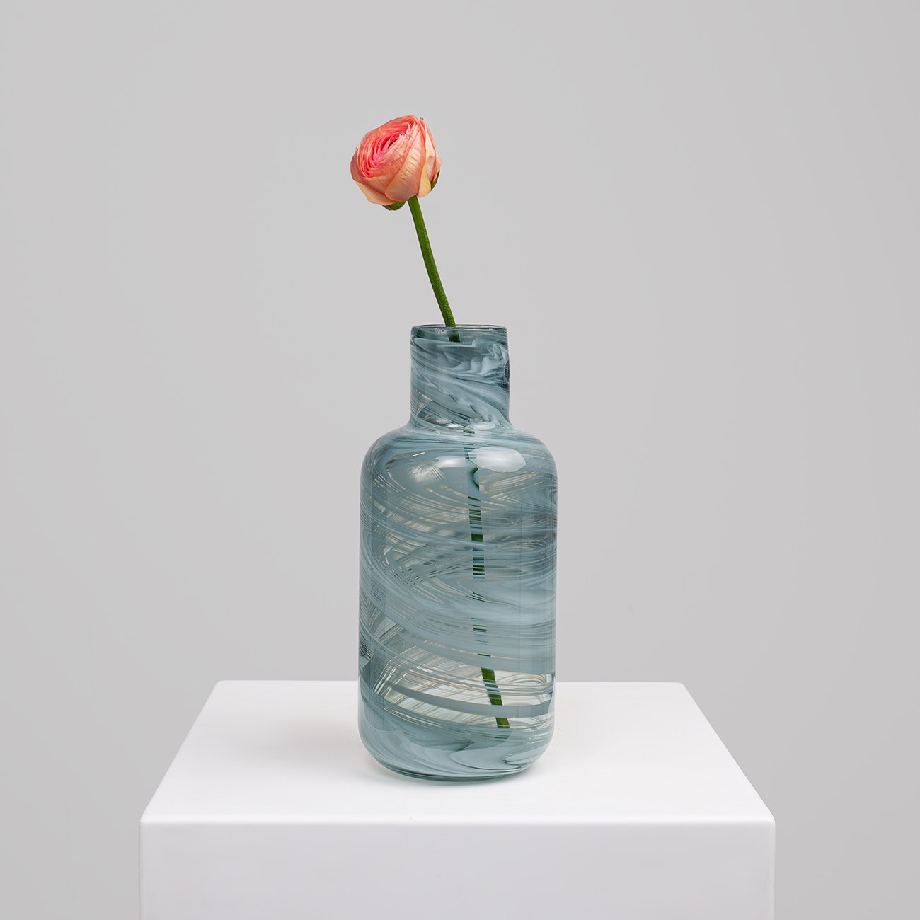 Станет изысканным акцентом в вашем интерьере. Прозрачное стекло с легким голубым оттенком и витковым узором придаст вашему дому ощущение спокойствия и стиля. Эта ваза гармонично впишется в любой интерьер, добавляя нотки минимализма и утончённости.