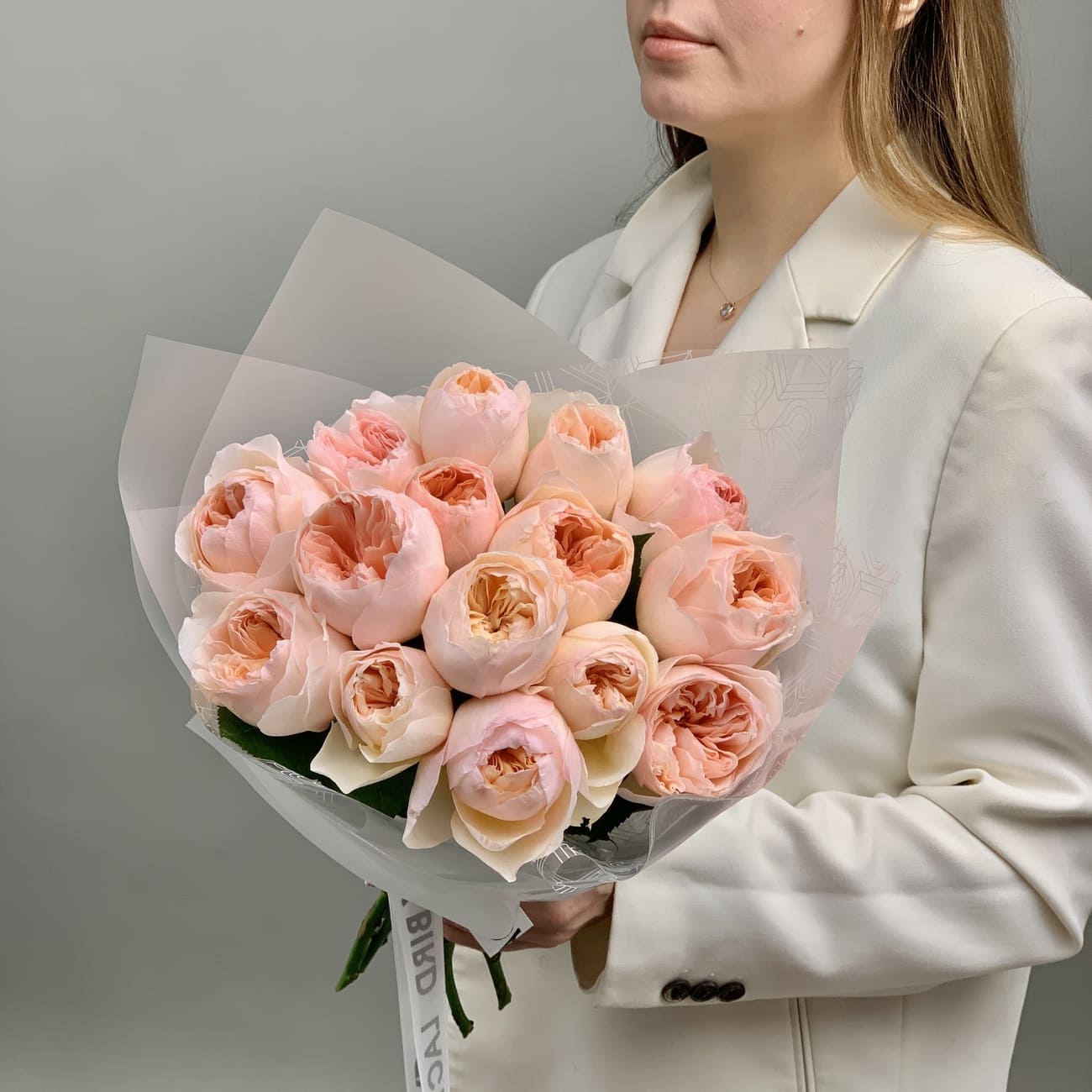 Свежие цветы от Lacy Bird доставляются в фирменной упаковке, которую необходимо снять при установке в вазу. Не срезайте ленту, связывающую букет для сохранения формы.