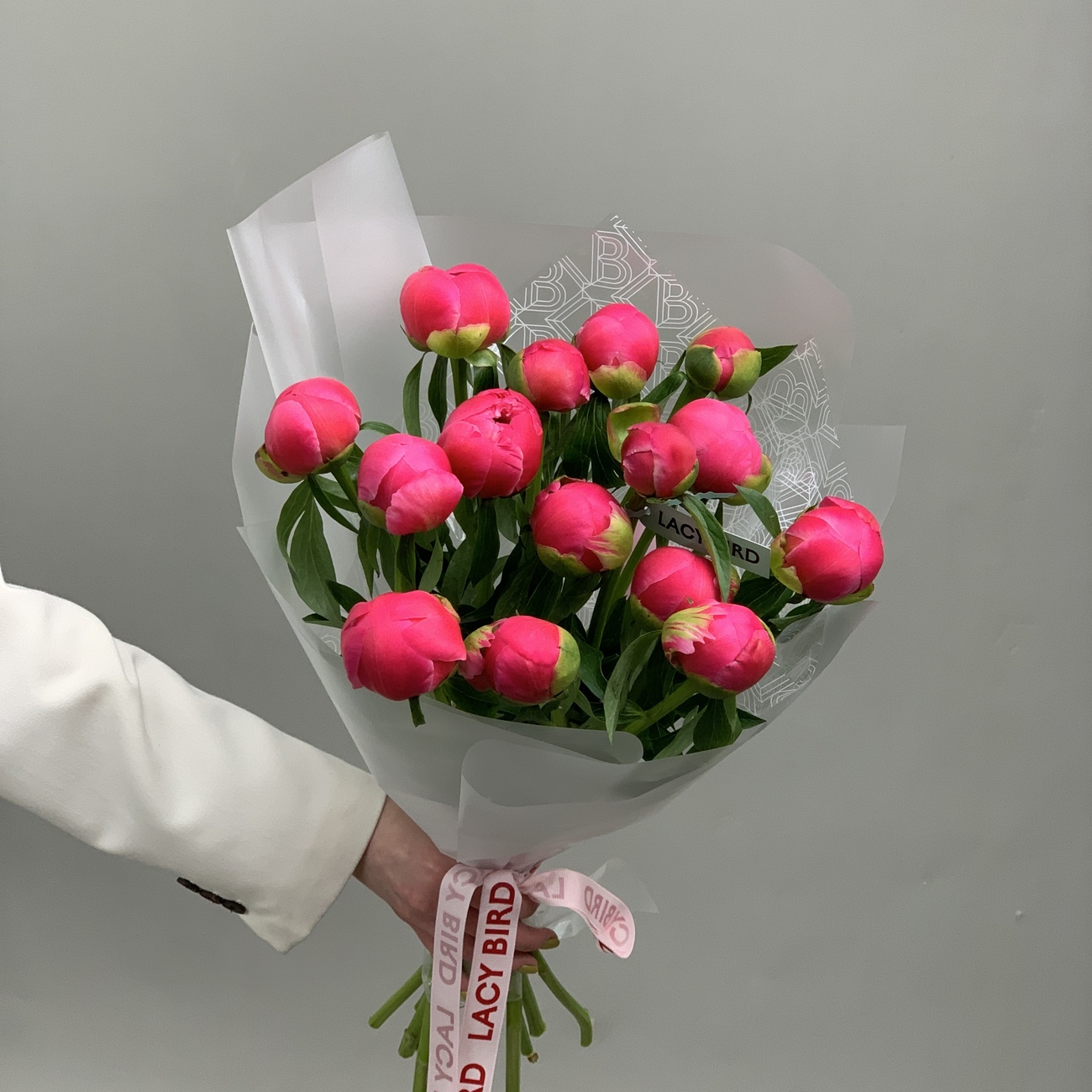 Свежие цветы от Lacy Bird доставляются в фирменной упаковке, которую необходимо снять при установке в вазу. Не срезайте ленту, связывающую букет для сохранения формы.
