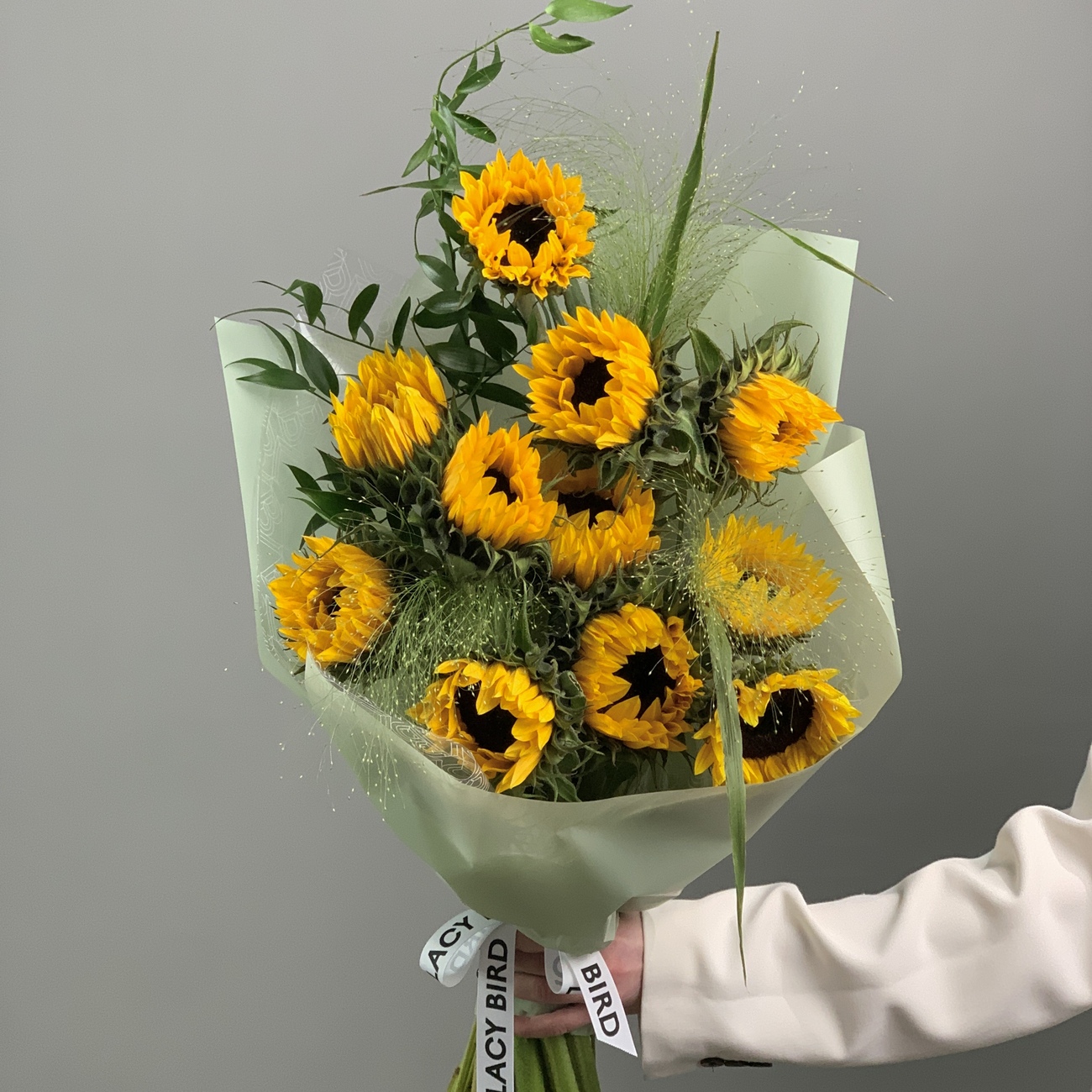 Свежие цветы от Lacy Bird доставляются в фирменной упаковке, которую необходимо снять при установке в вазу. Не срезайте ленту, связывающую букет для сохранения формы.