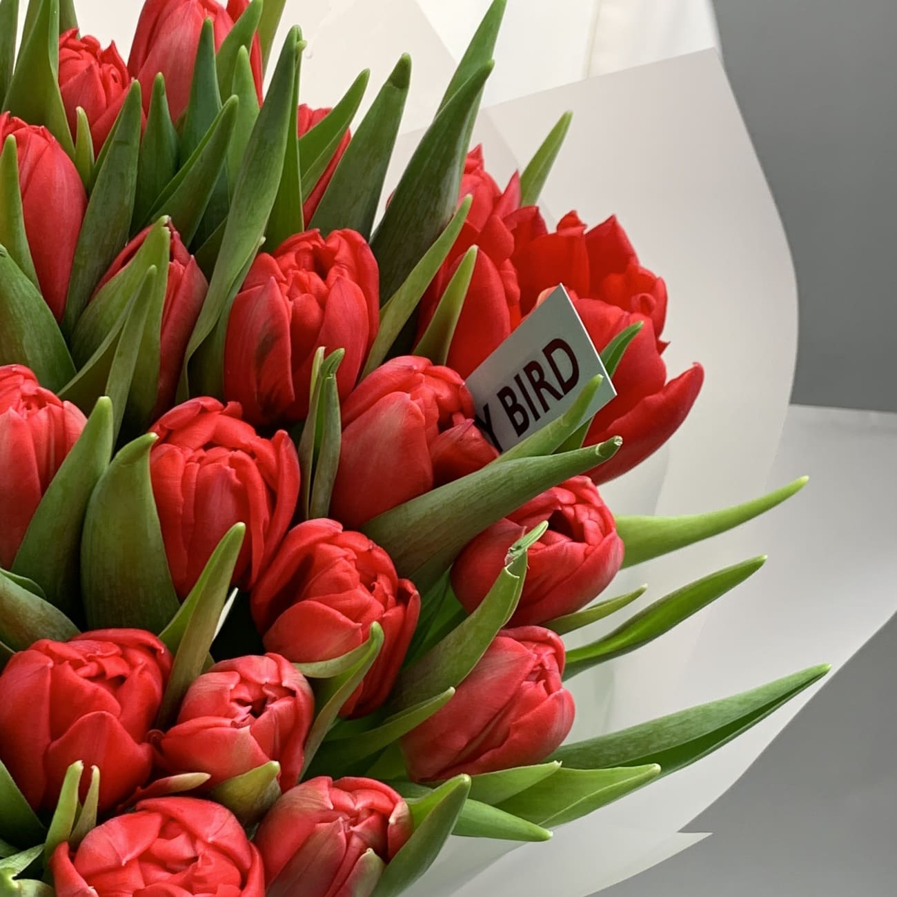 Свежие цветы от Lacy Bird доставляются в фирменной упаковке, которую необходимо снять при установке в вазу. Не срезайте ленту, связывающую букет для сохранения формы.