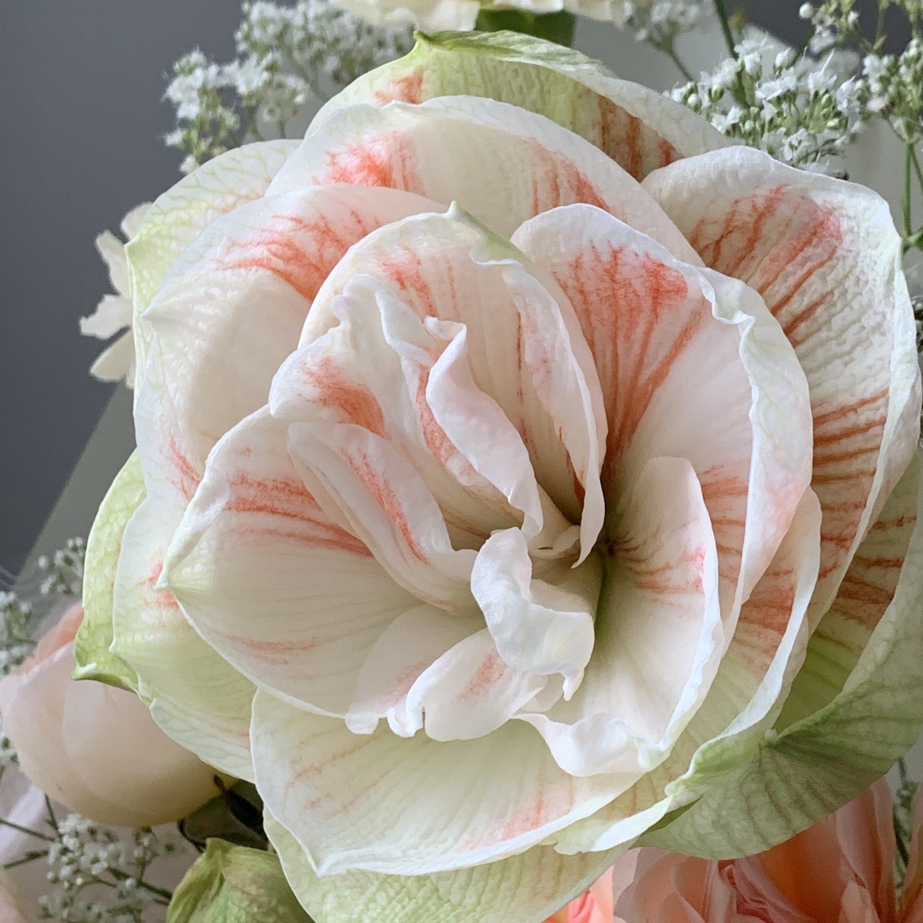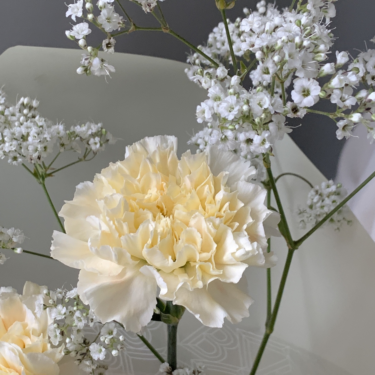 Свежие цветы от Lacy Bird доставляются в фирменной упаковке, которую необходимо снять при установке в вазу. Не срезайте ленту, связывающую букет для сохранения формы.