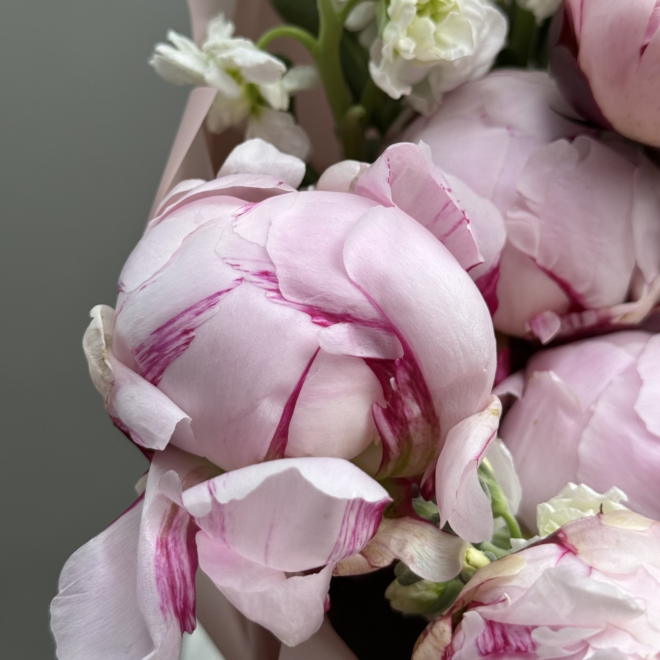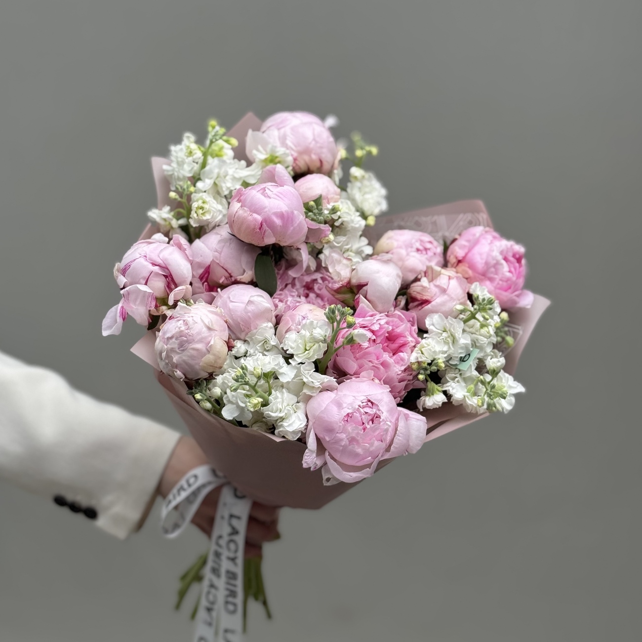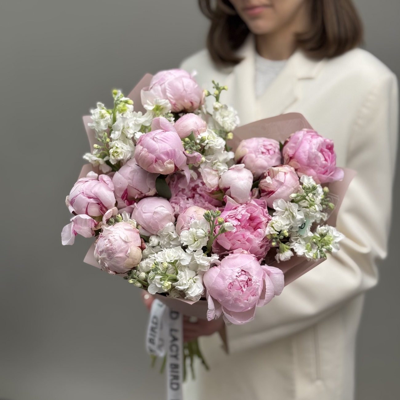 Свежие цветы от Lacy Bird доставляются в фирменной упаковке, которую необходимо снять при установке в вазу. Не срезайте ленту, связывающую букет для сохранения формы.