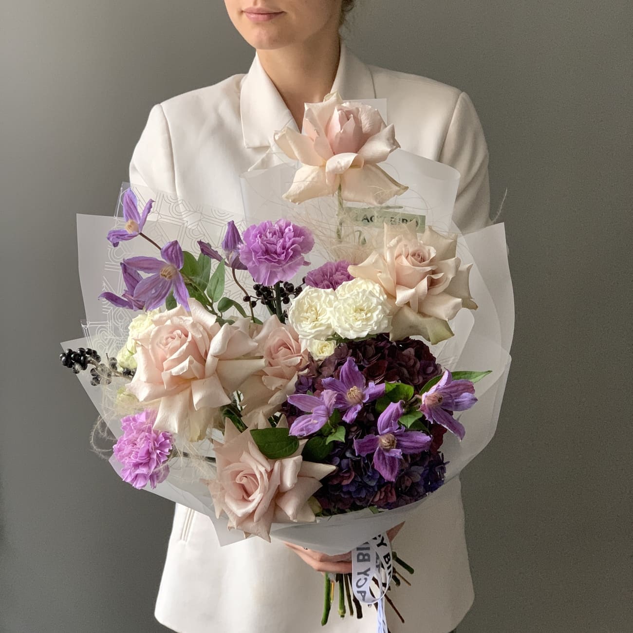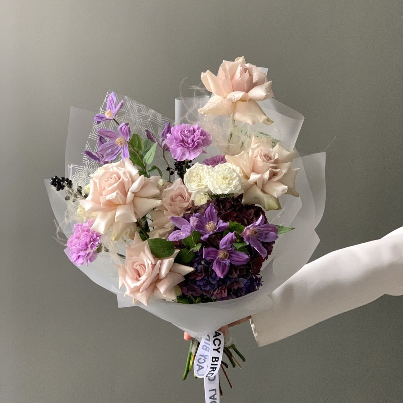 Свежие цветы от Lacy Bird доставляются в фирменной упаковке, которую необходимо снять при установке в вазу. Не срезайте ленту, связывающую букет для сохранения формы.