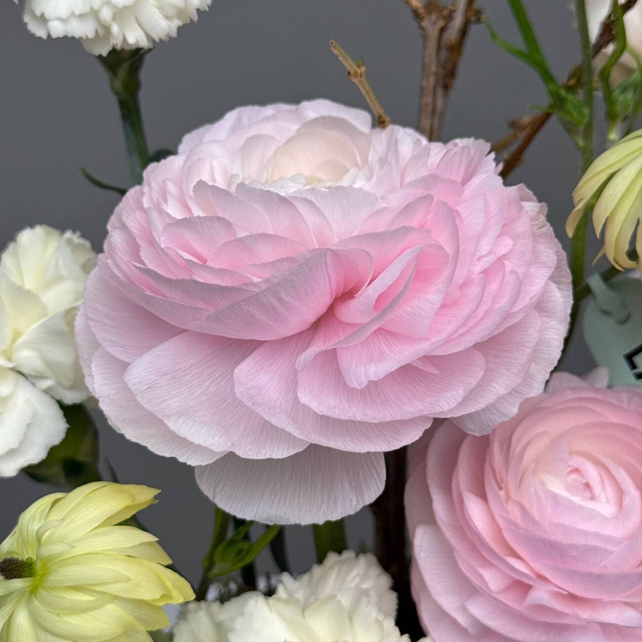 Свежие цветы от Lacy Bird доставляются в фирменной упаковке, которую необходимо снять при установке в вазу. Не срезайте ленту, связывающую букет для сохранения формы.