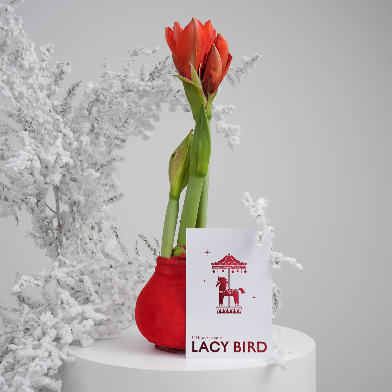 Свежие цветы от Lacy Bird доставляются в фирменной упаковке, которую необходимо снять при установке в вазу. Не срезайте ленту, связывающую букет для сохранения формы.
