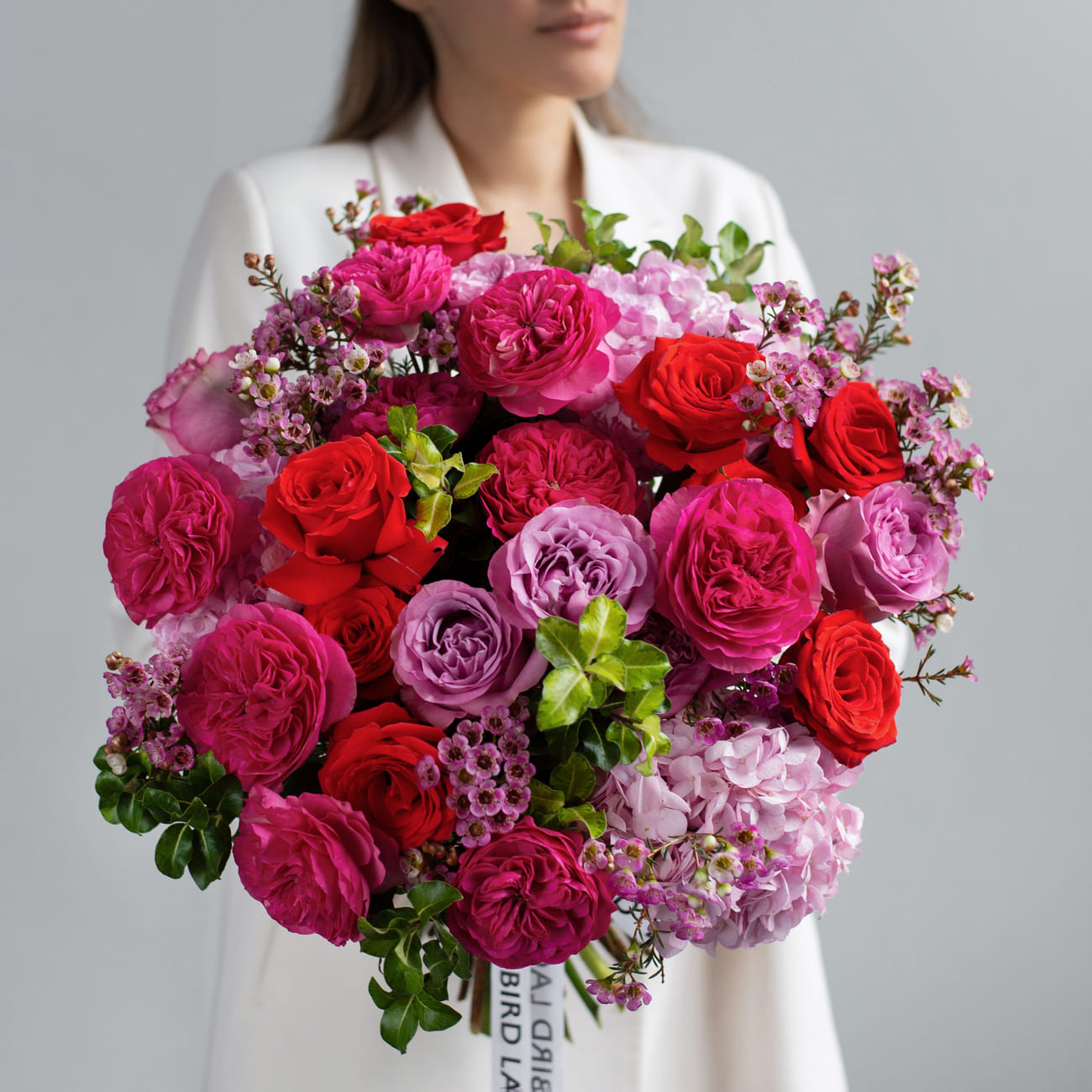 We pack bouquets in stylish branded boxes with lids for all weather protection (heat, cold, wind or rain - order a bouquet no matter the weather!). We also include instructions on how to care for a bouquet and a product to prolong the life of flowers.