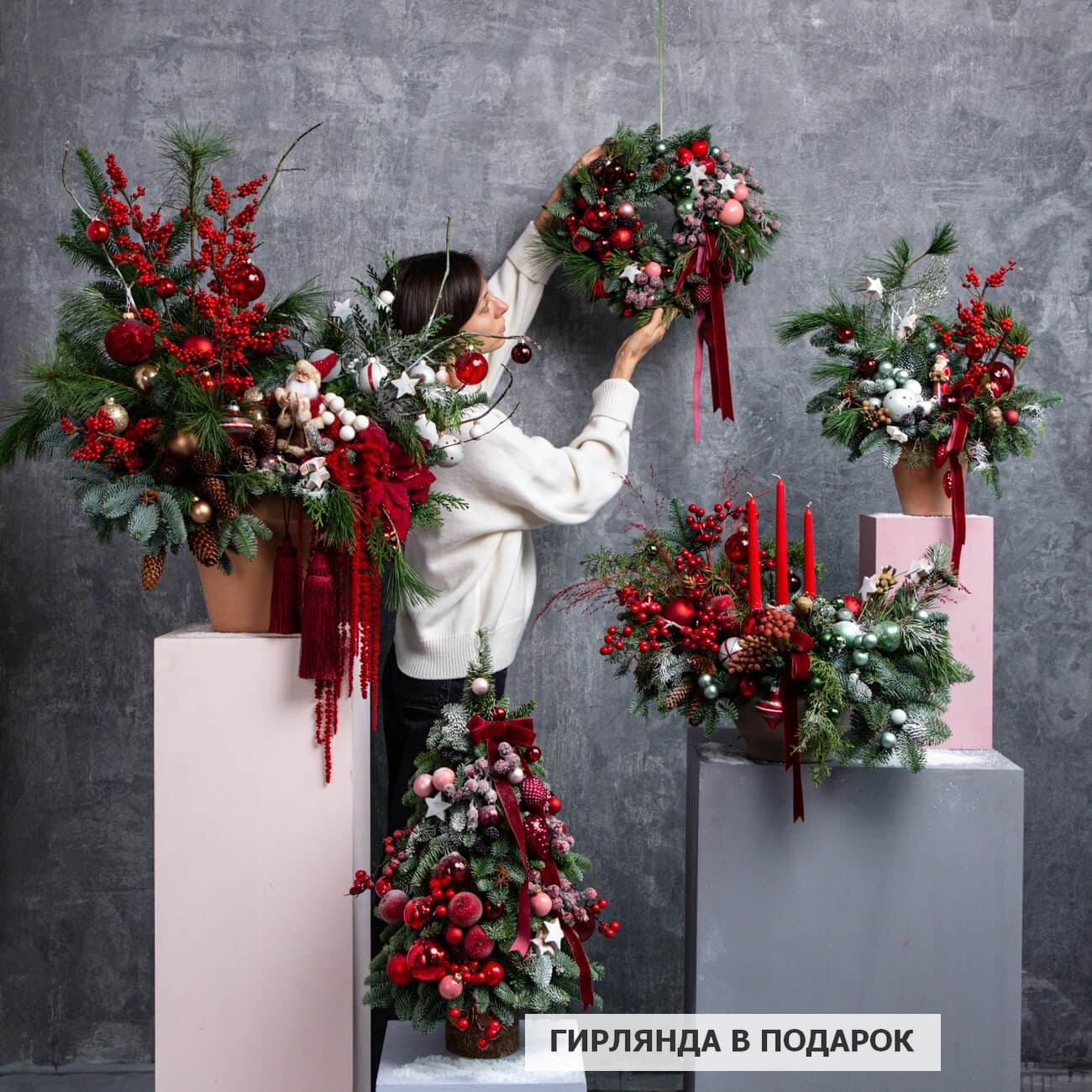 Состав сета: Рождественский венок, ёлка и 3 композиции в размерах M, L, XL.
