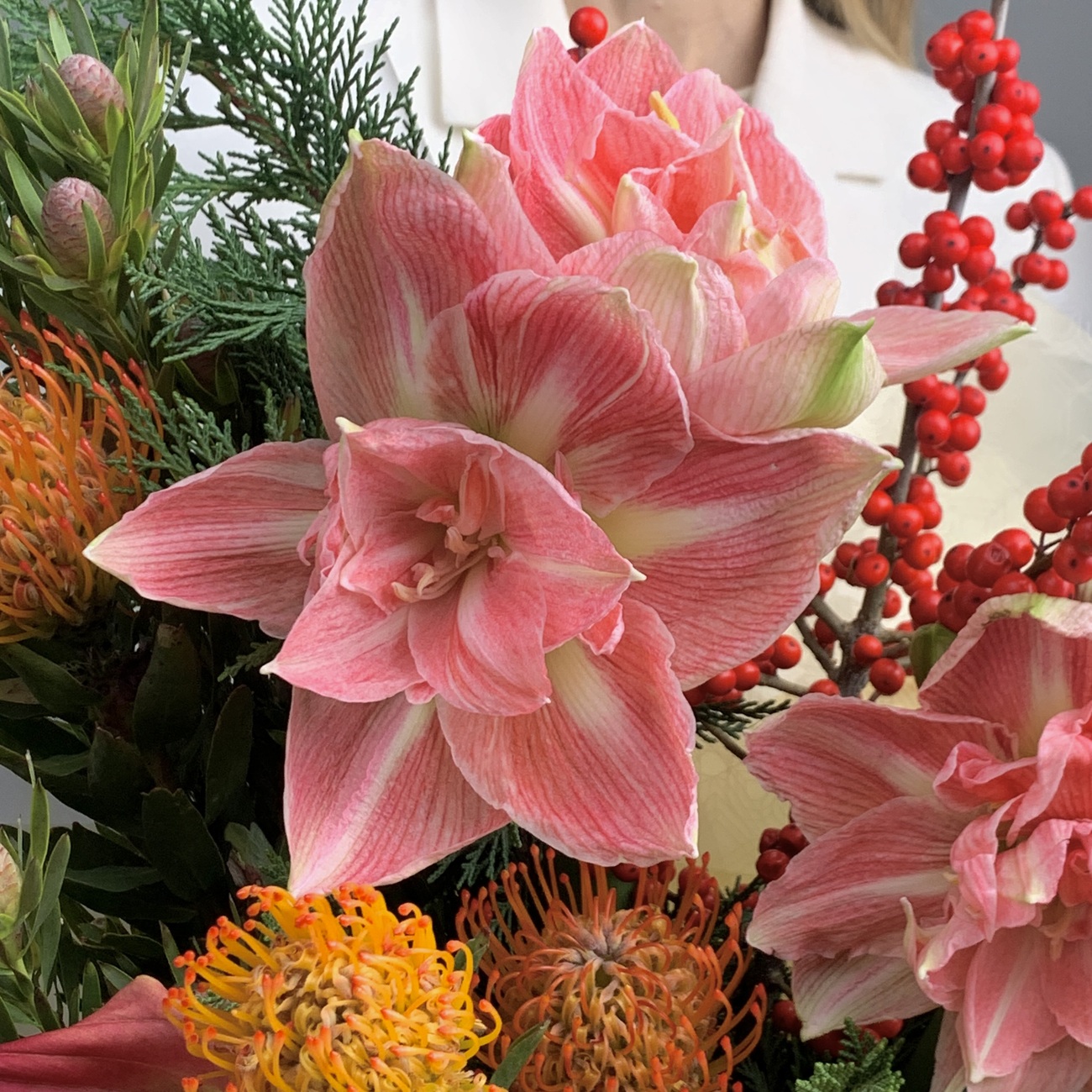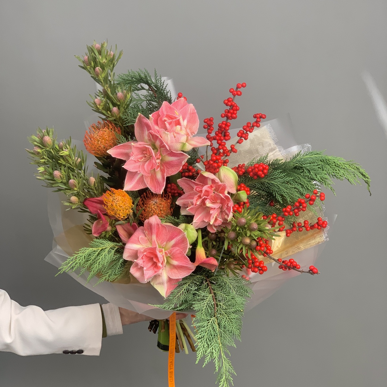 We pack bouquets in stylish branded boxes with lids for all weather protection (heat, cold, wind or rain - order a bouquet no matter the weather!). We also include instructions on how to care for a bouquet and a product to prolong the life of flowers.