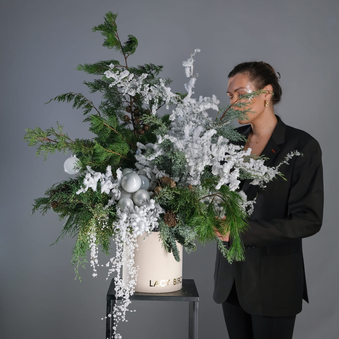 Новогодняя коробка "Секрет под елкой" — это воплощение уюта и волшебства зимних праздников. Она собрана из натуральных хвойных материалов, дополненных заснеженными ветками и изысканными украшениями. Эта композиция станет стильным акцентом в вашем доме, создавая атмосферу загадочности и радости, словно спрятавшийся под елкой сюрприз. Каждая деталь коробки передает дух Рождества, приглашая вас и ваших близких насладиться чарами новогодней ночи.
