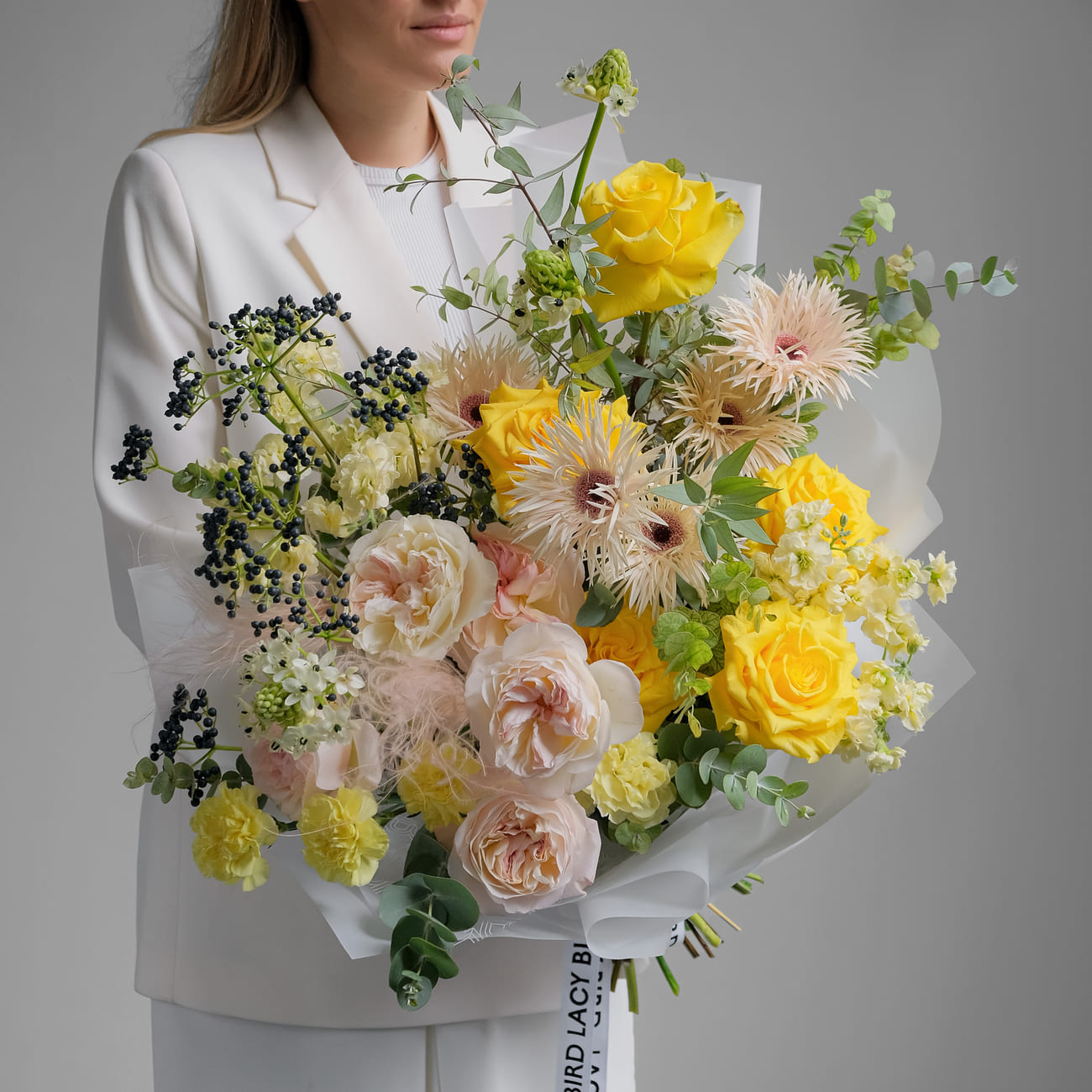 Букет, в который вложено много любви. Флористы студии Lacy Bird сделали его из самых свежих цветов, тщательно продумав его состав. Теперь он готов удивить красотой своего получателя!