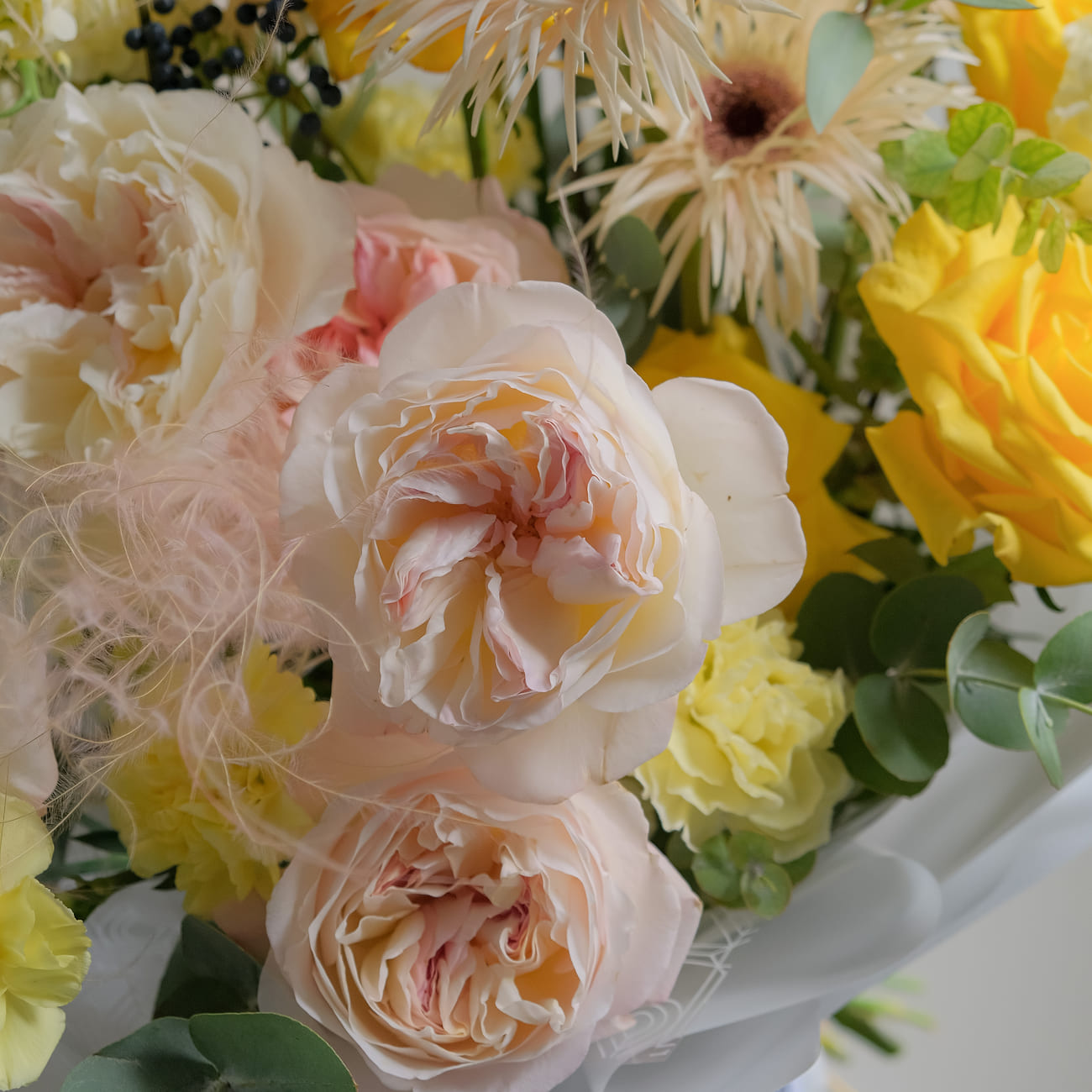 Для продления жизни цветам, рекомендуем поставить букет в прохладном месте, вдали от солнечных лучей.
