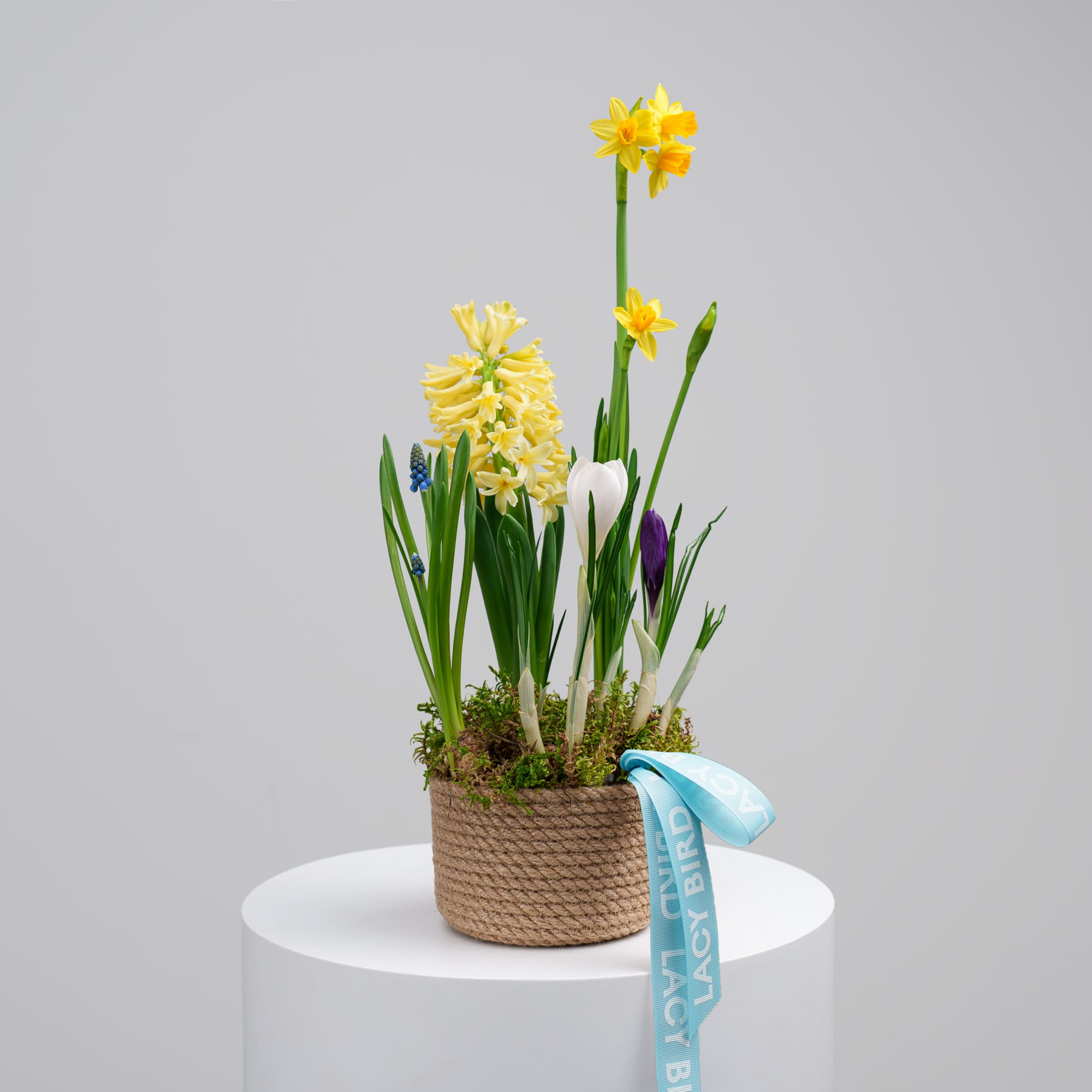 Свежие цветы от Lacy Bird доставляются в фирменной упаковке, которую необходимо снять при установке в вазу. Не срезайте ленту, связывающую букет для сохранения формы.