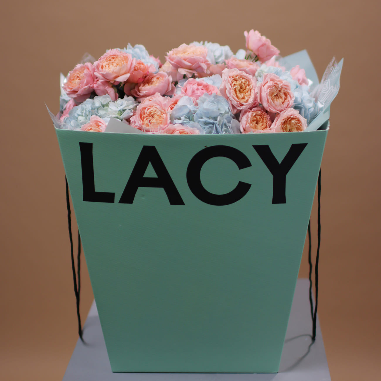 Свежие цветы от Lacy Bird доставляются в фирменной упаковке, которую необходимо снять при установке в вазу. Не срезайте ленту, связывающую букет для сохранения формы.