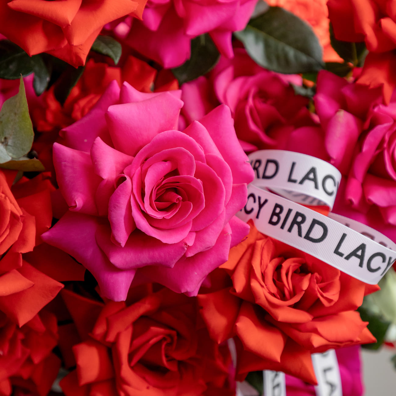 Свежие цветы от Lacy Bird доставляются в фирменной упаковке, которую необходимо снять при установке в вазу. Не срезайте ленту, связывающую букет для сохранения формы.