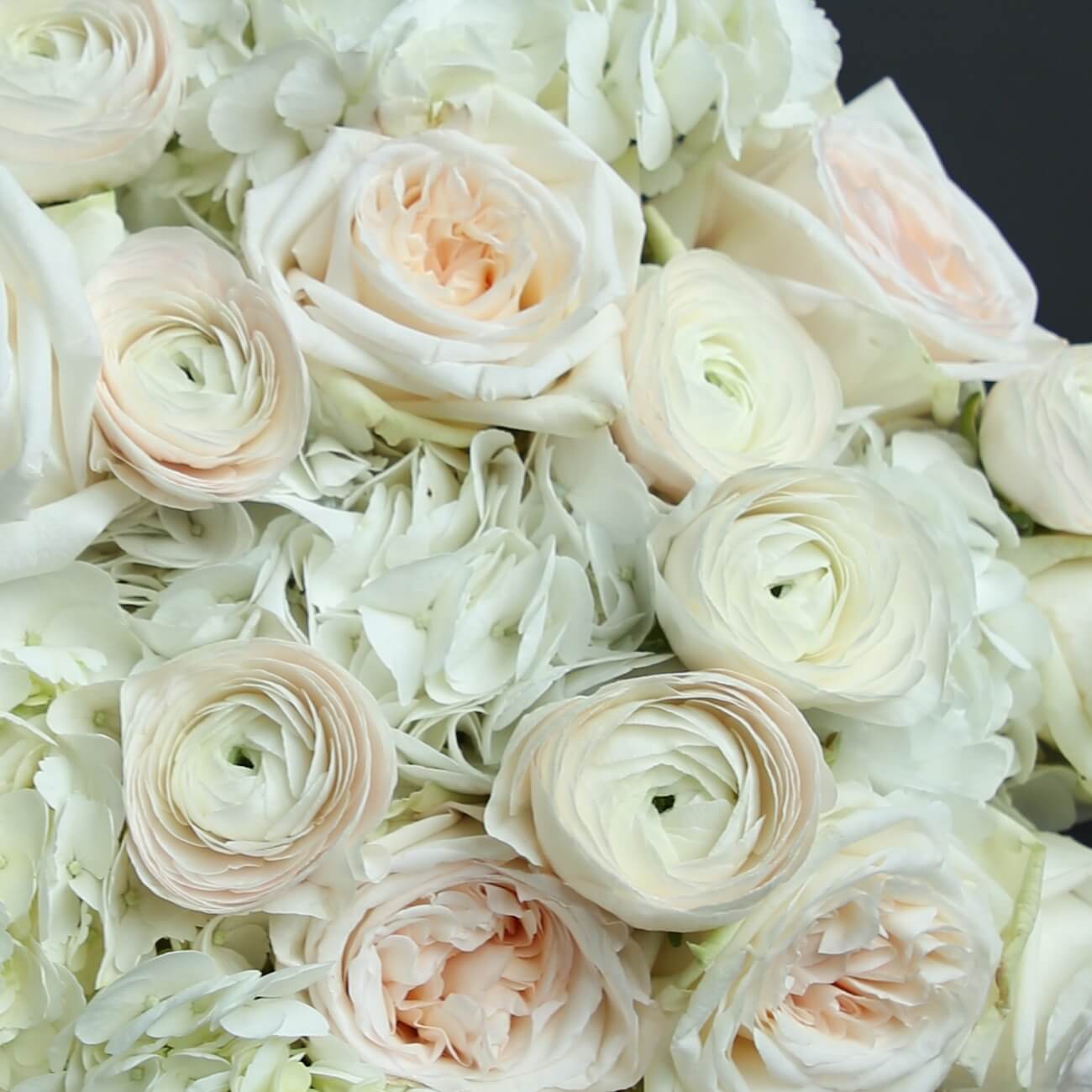 Триобукет из ранункулюсов, гортензии и пионовидных роз Триобукет из ранункулюсов, гортензии и пионовидных роз