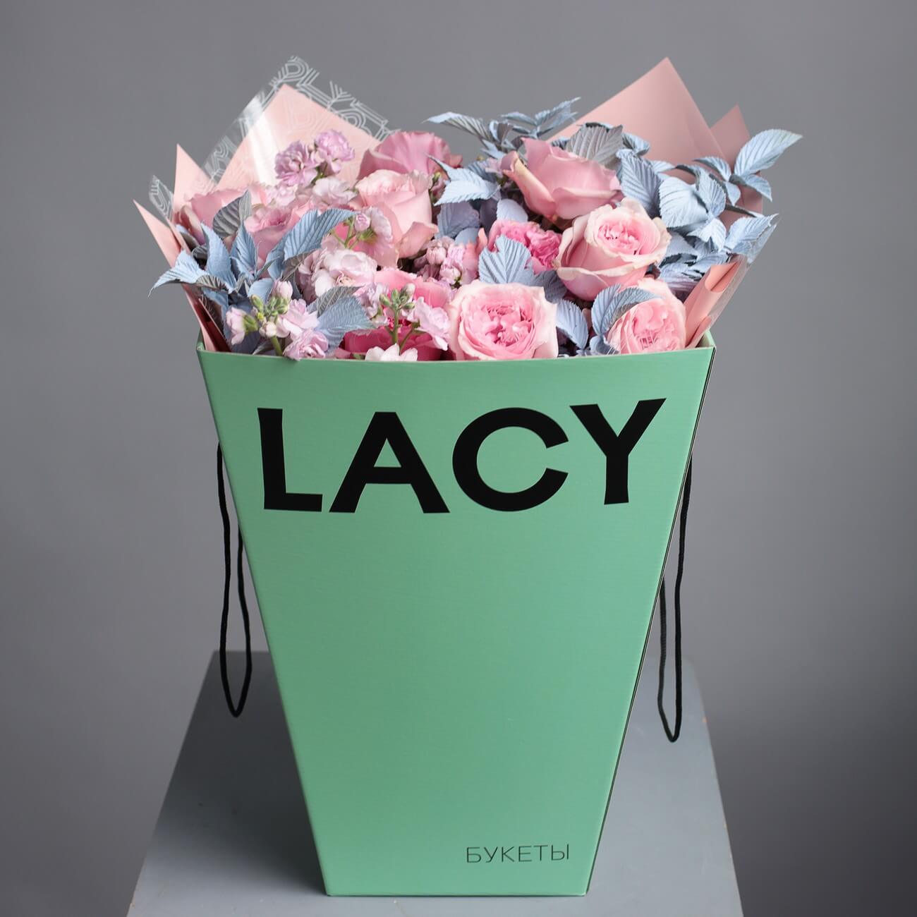 Свежие цветы от Lacy Bird доставляются в фирменной упаковке, которую необходимо снять при установке в вазу. Не срезайте ленту, связывающую букет для сохранения формы.