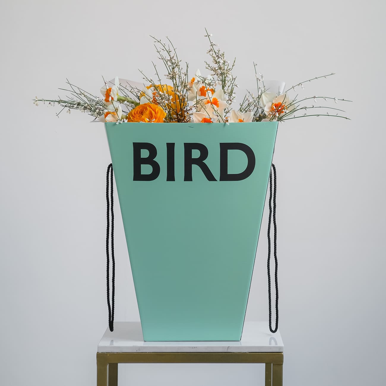 Свежие цветы от Lacy Bird доставляются в фирменной упаковке, которую необходимо снять при установке в вазу. Не срезайте ленту, связывающую букет для сохранения формы.