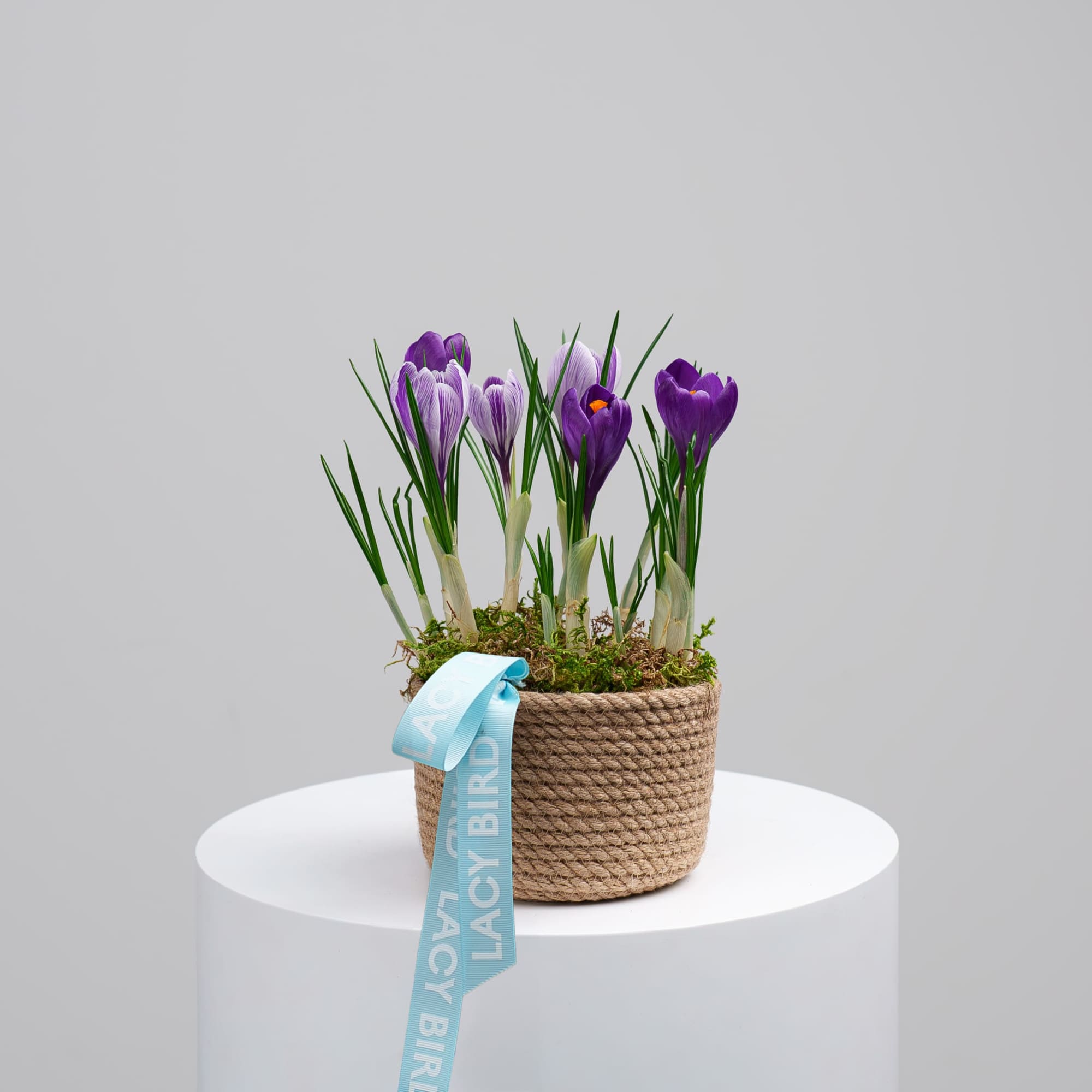 Свежие цветы от Lacy Bird доставляются в фирменной упаковке, которую необходимо снять при установке в вазу. Не срезайте ленту, связывающую букет для сохранения формы.