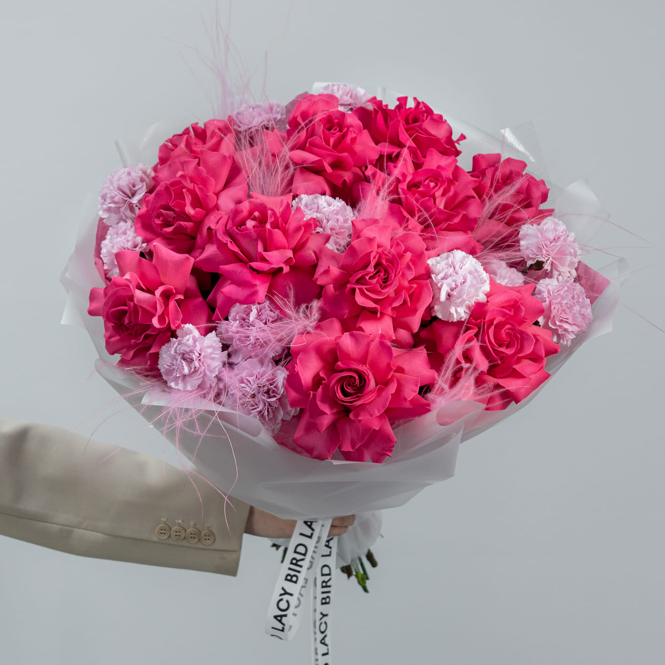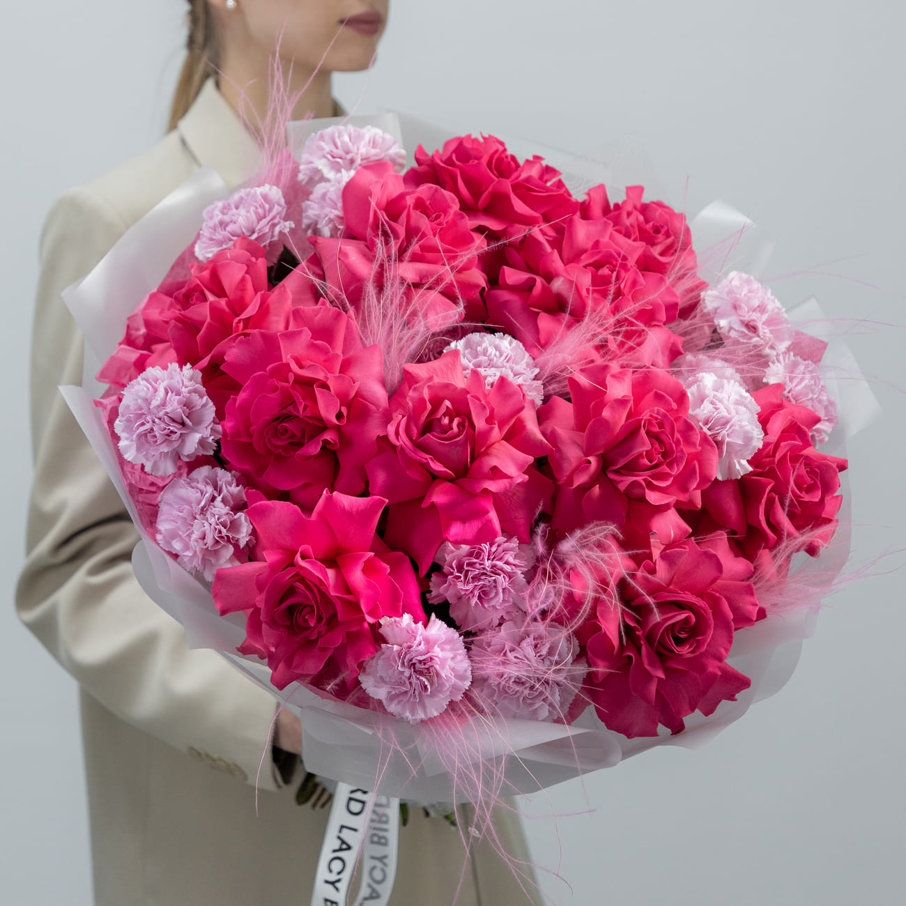 Ощутите яркость и свежесть с нашим дуобукетом из французских роз Pink Floyd и диантусов со стифой. Восхитительное сочетание ароматных французских роз и нежных диантусов создает настоящий праздничный акцент, а стифа добавляет легкости и динамики.