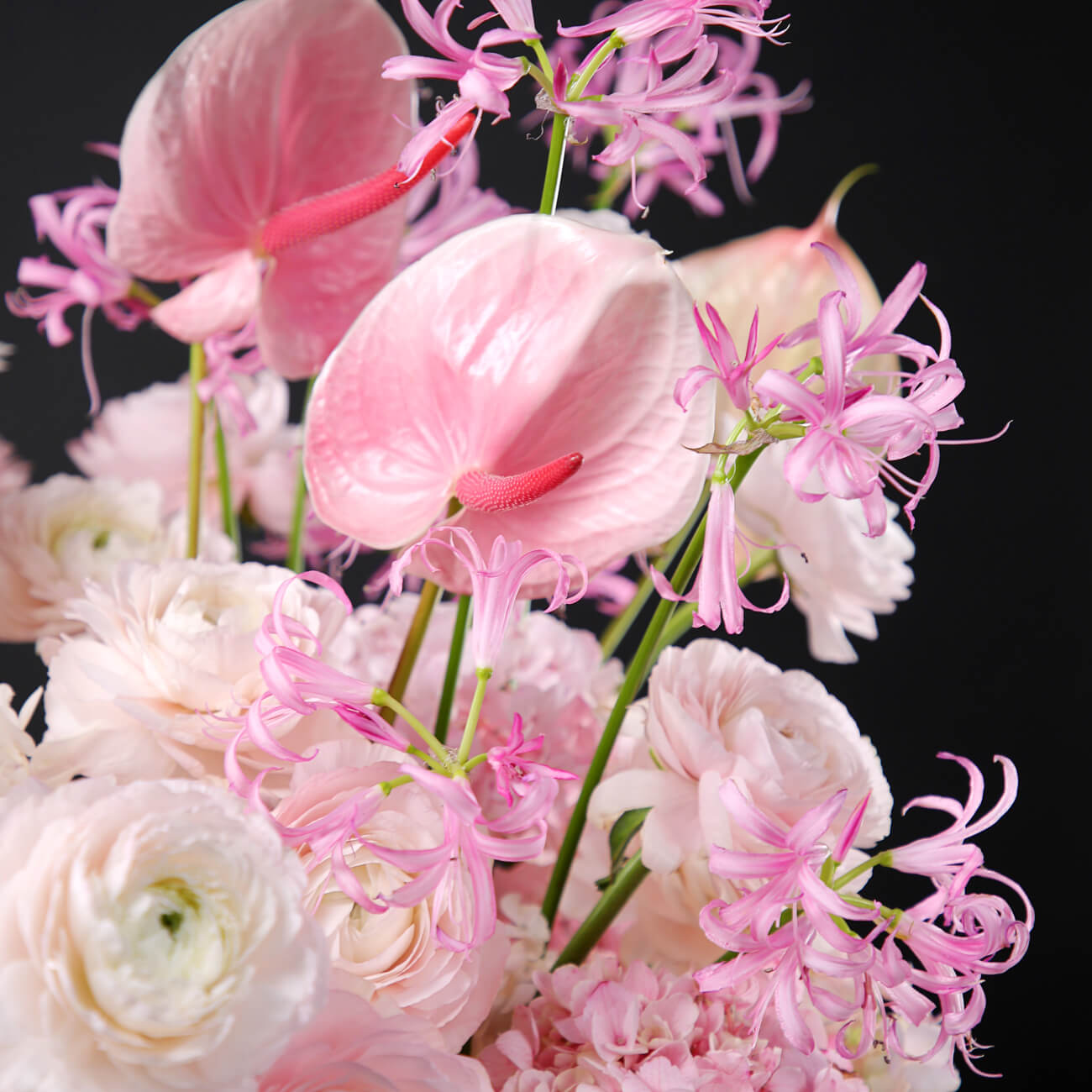 Представляем шляпную коробку «Любовные истории" — воплощение нежности и романтичности. Это гармоничное сочетание ранункулюсов, антуриумов, гортензий и нерине в мягких пастельных оттенках. Каждый элемент этой композиции рассказывает свою историю о нежности и утонченной элегантности.