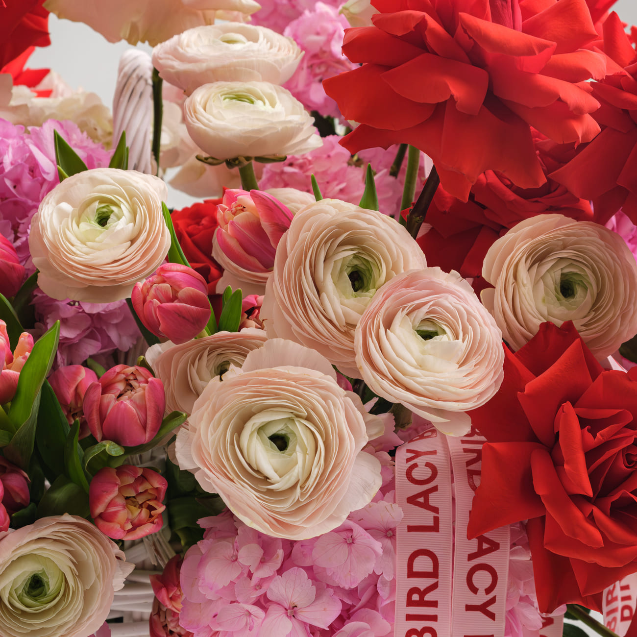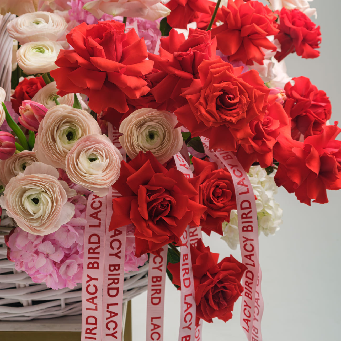 Свежие цветы от Lacy Bird доставляются в фирменной упаковке, которую необходимо снять при установке в вазу. Не срезайте ленту, связывающую букет для сохранения формы.