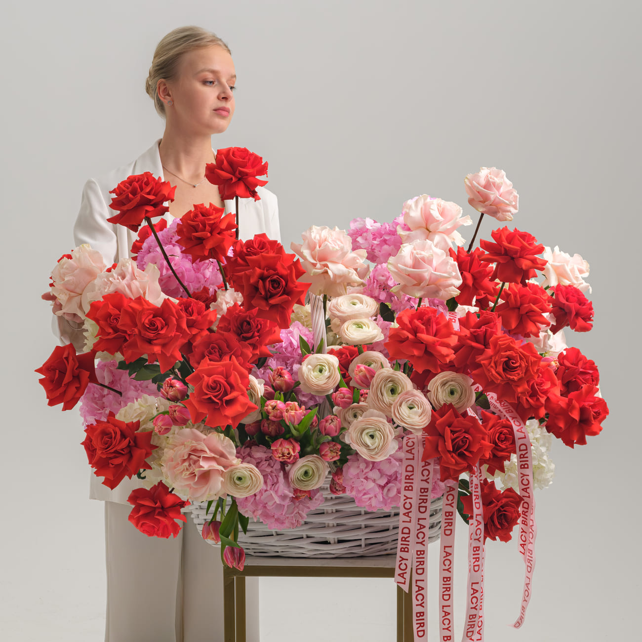 Эта корзина станет идеальным подарком на любое торжество или просто способом выразить свои чувства близким. Окунитесь в мир красоты и утонченности, который захватывает дух и оставляет незабываемые впечатления.