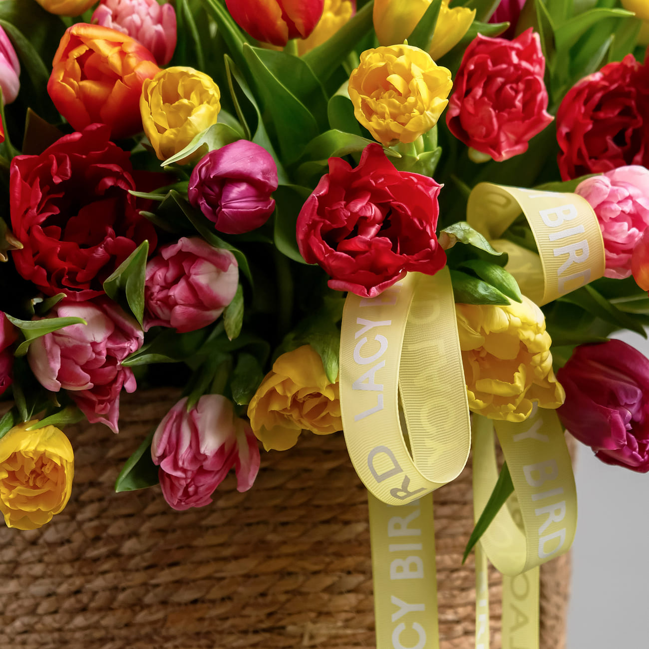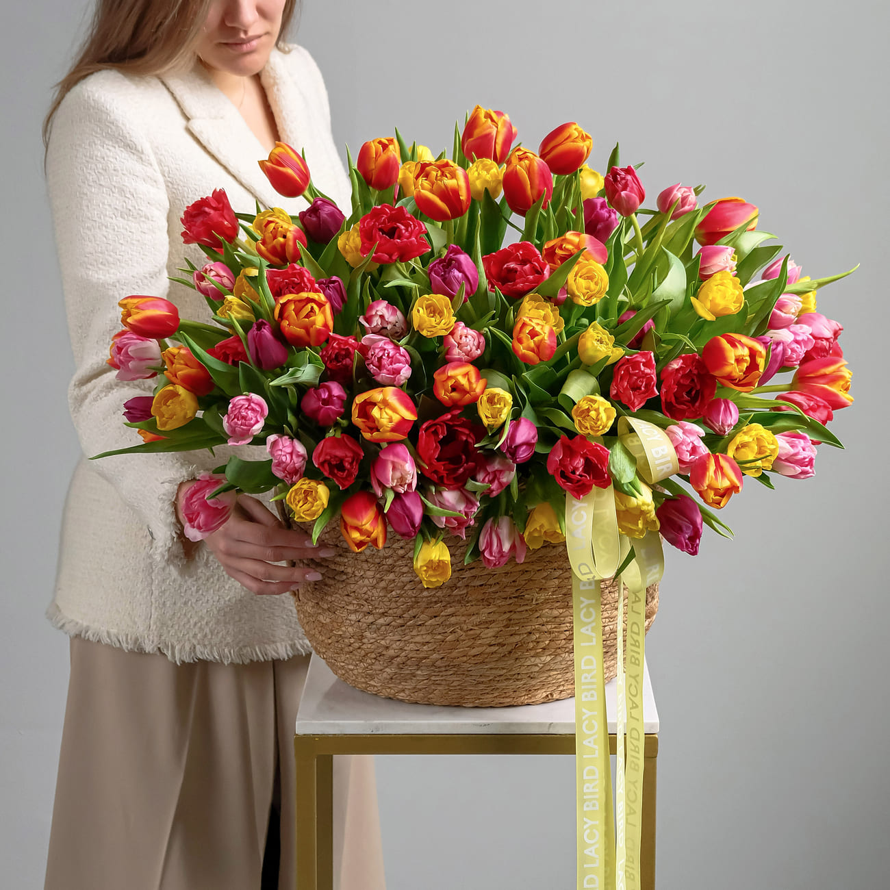 Оттенок и сорт тюльпанов может отличаться от цветов представленных на фото.