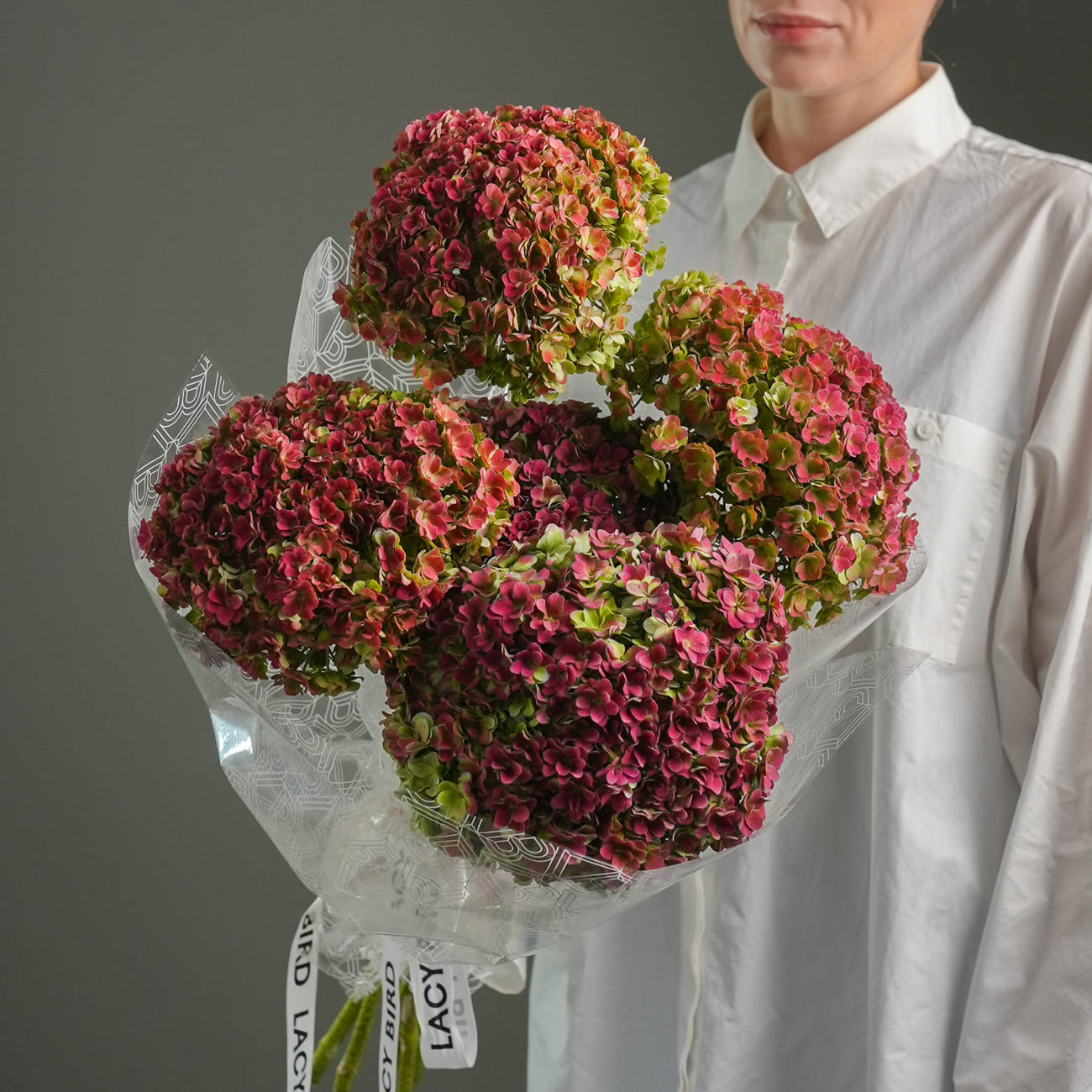 Почувствуйте магию теплых осенних вечеров с гортензией в красно-зеленых оттенках. Порадуйте себя и своих близких этим потрясающим буйством красок!