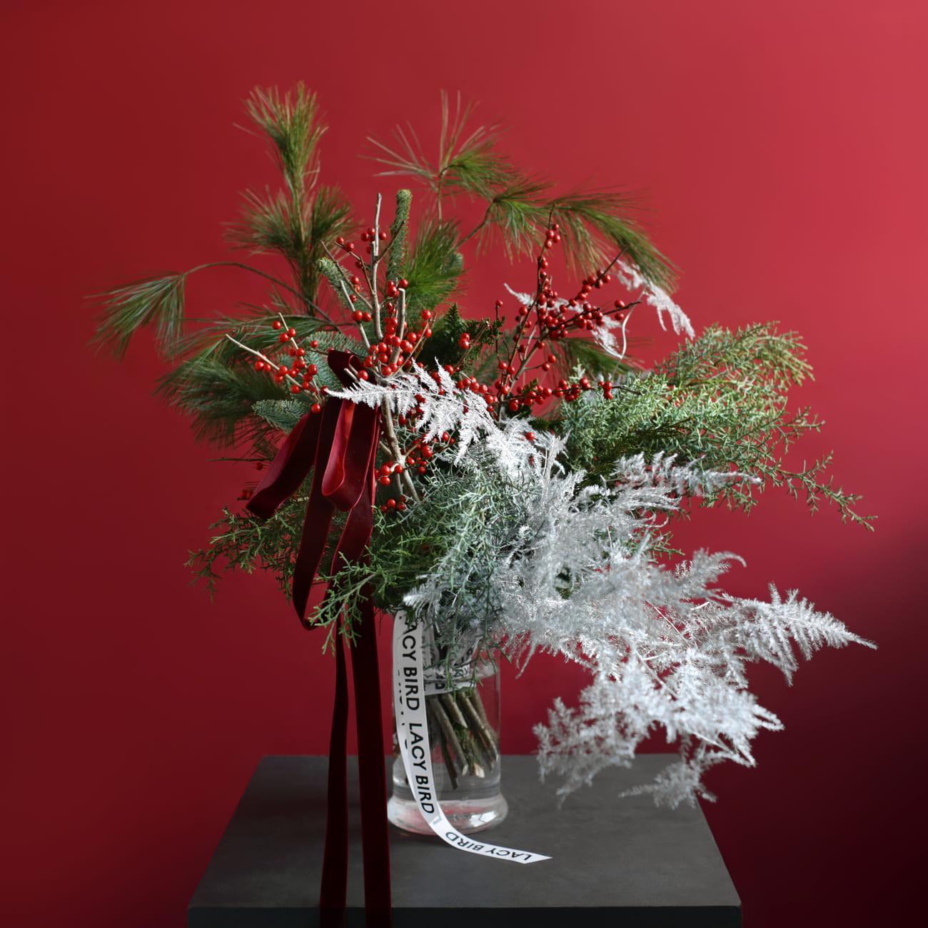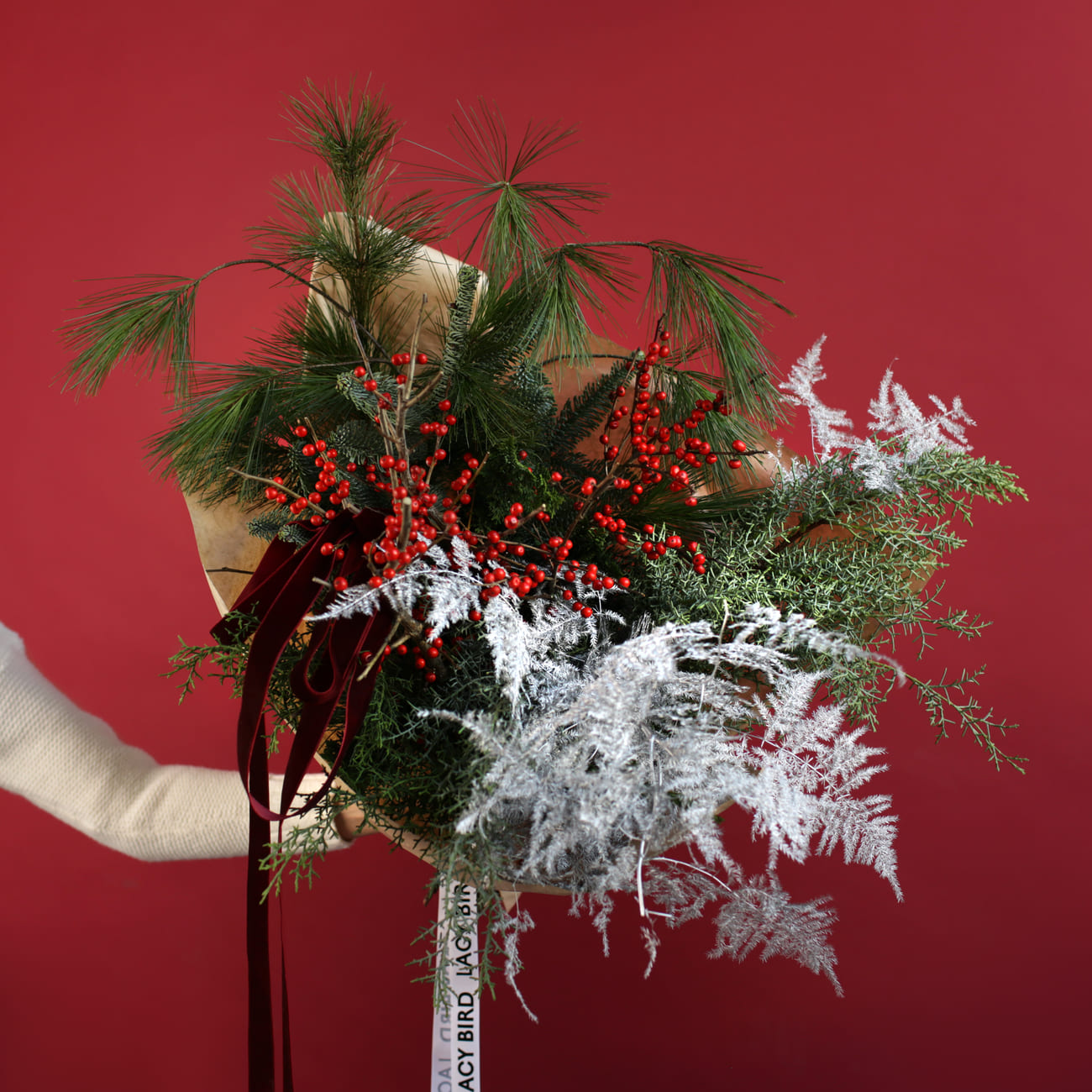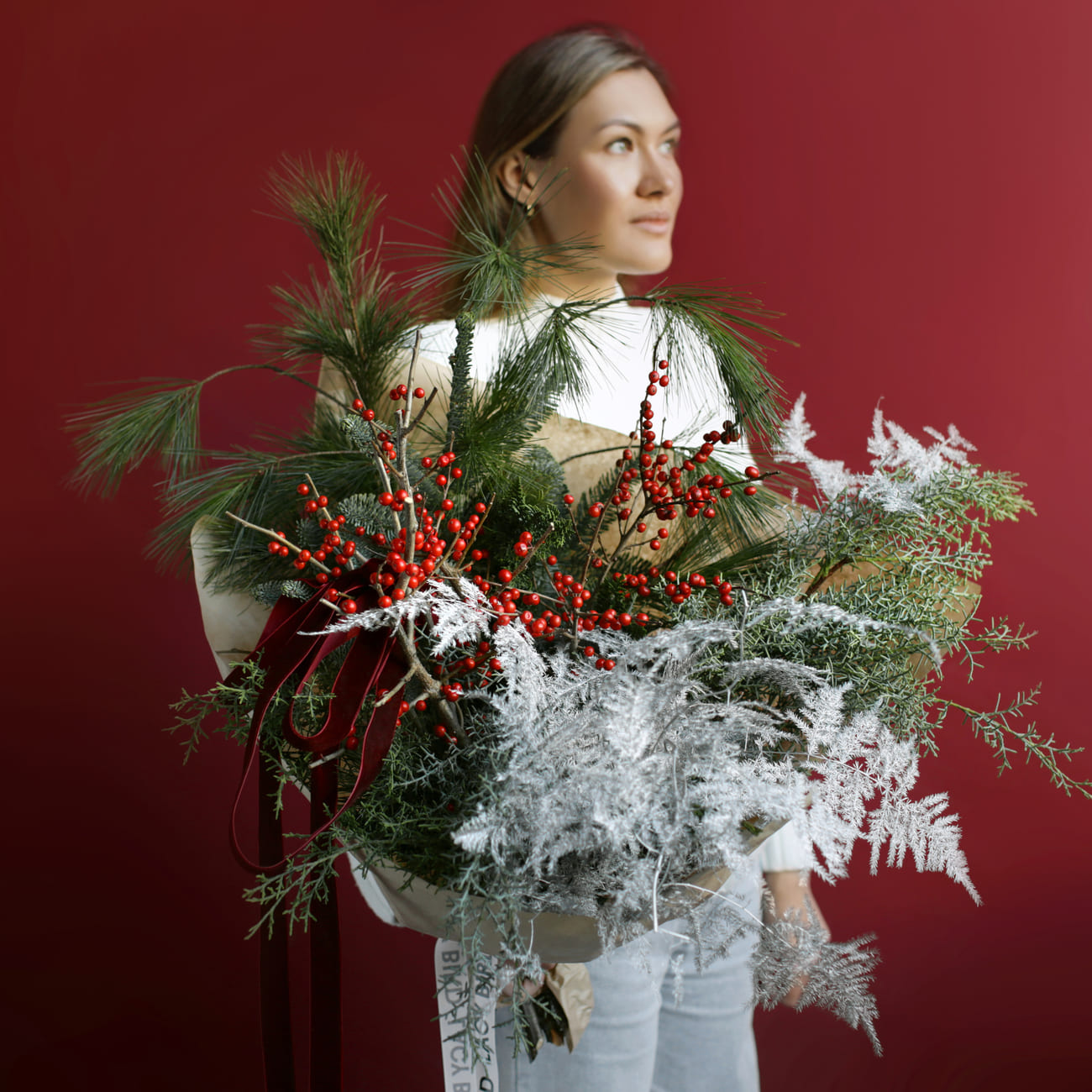 Погрузитесь в атмосферу зимнего волшебства с нашей композицией «Зимняя Охапка». Этот букет, выполненный из натуральных хвойных материалов, сочетает в себе свежесть леса и праздничное настроение. Элегантные ветви, украшенные декоративными элементами и ягодами, создают уютный акцент в вашем интерьере.