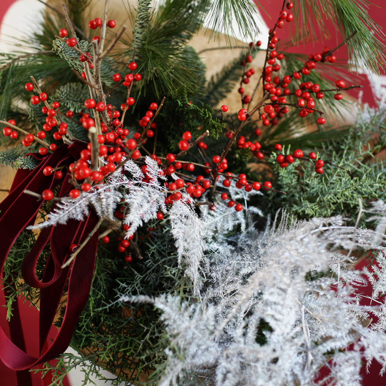 Каждая композиция/елка или венок упакованы для безопасной транспортировки. Достаньте композицию из упаковки, взяв ее за дно, чтобы не повредить. Не оставляйте композицию в закрытой упаковке надолго, чтобы там не образовался конденсат.