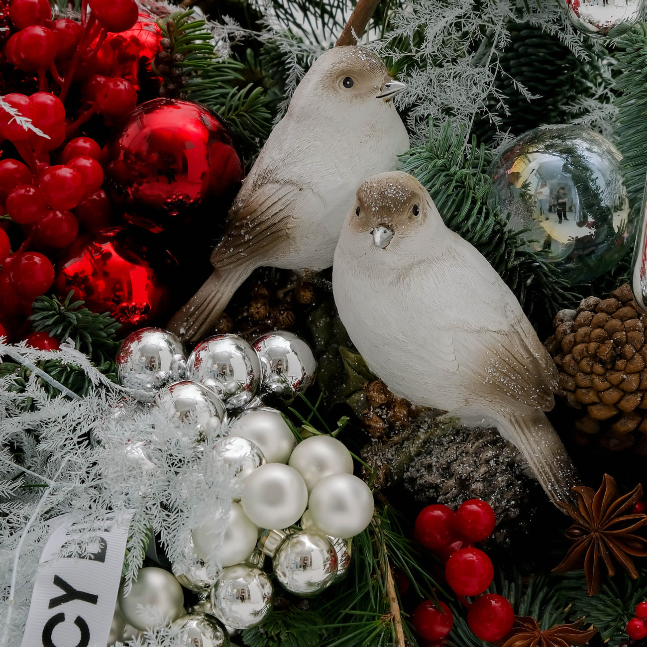 Каждая композиция/елка или венок упакованы для безопасной транспортировки. Достаньте композицию из упаковки, взяв ее за дно, чтобы не повредить. Не оставляйте композицию в закрытой упаковке надолго, чтобы там не образовался конденсат.