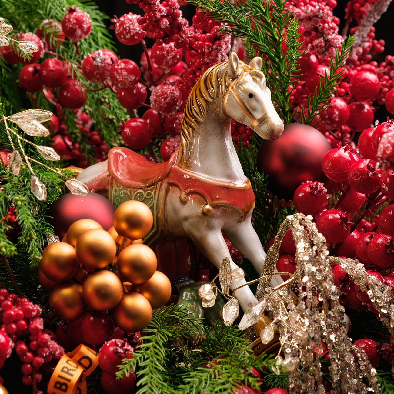 Эта композиция станет центром вашего интерьера, даря тепло и праздничное настроение всем, кто её увидит. А керамическая лошадка-качалка будет радовать вас круглый год, напоминая об уютных зимних вечерах.