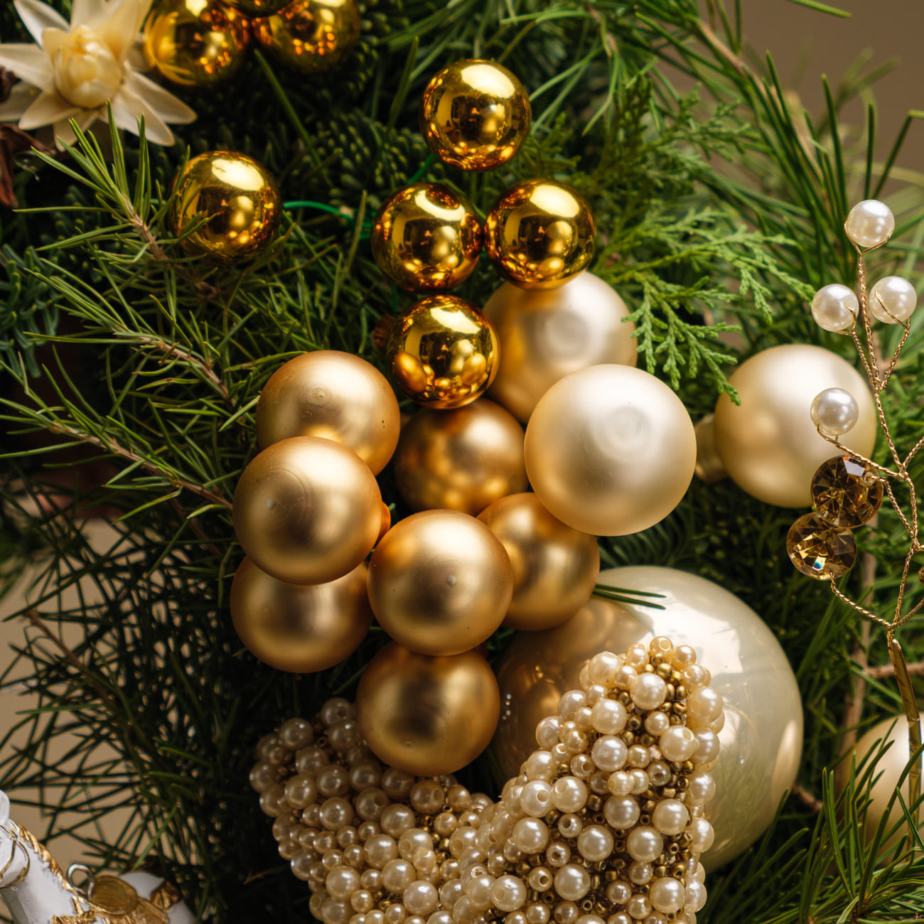 Создайте праздничное настроение с нашим венком из коллекции «Жемчужное сияние»!