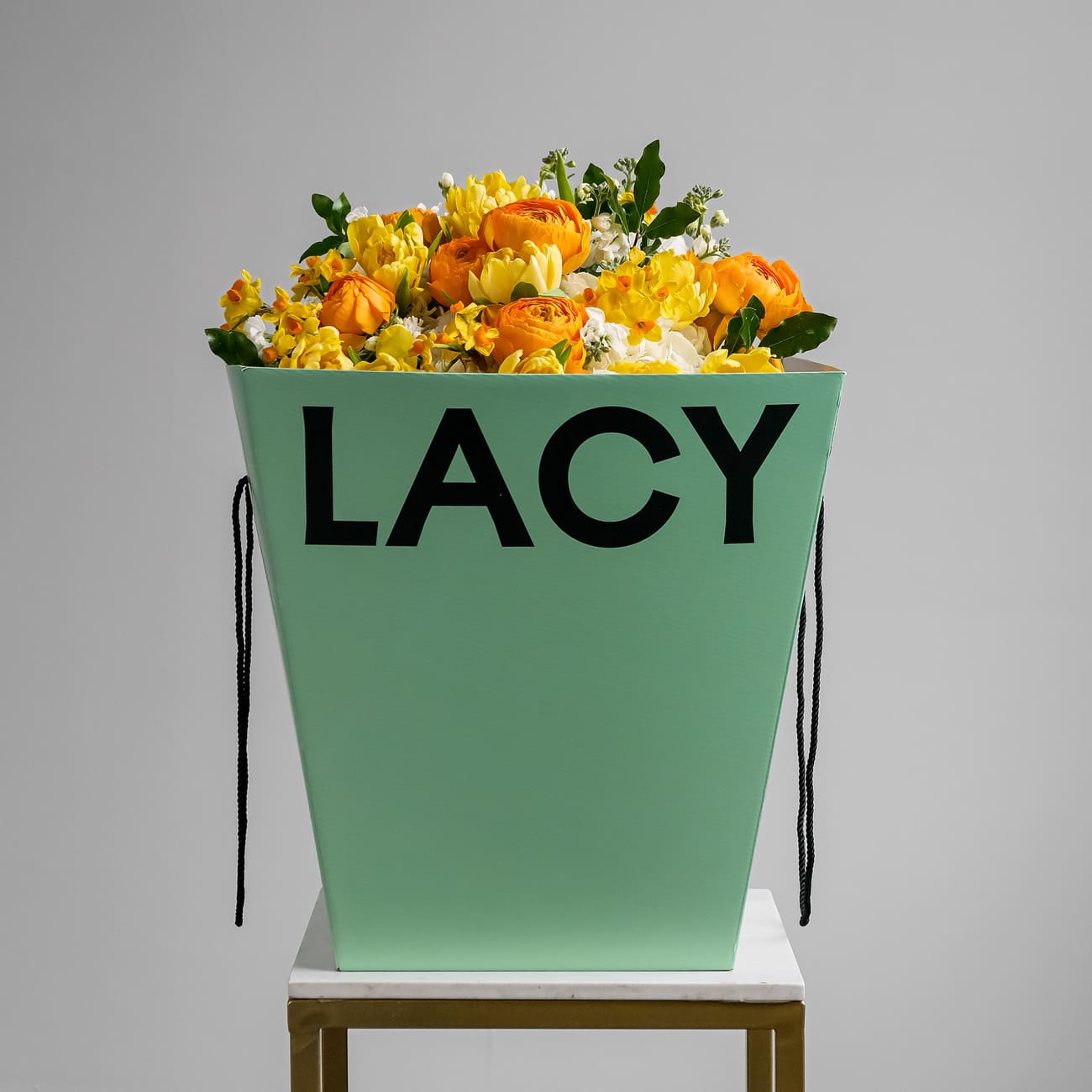 Свежие цветы от Lacy Bird доставляются в фирменной упаковке, которую необходимо снять при установке в вазу. Не срезайте ленту, связывающую букет для сохранения формы.