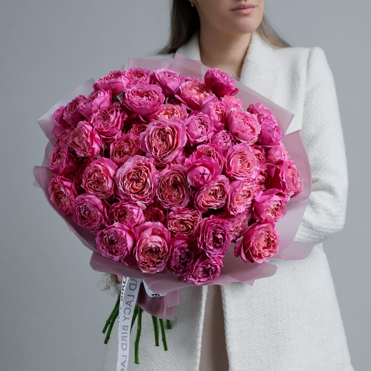 Свежие цветы от Lacy Bird доставляются в фирменной упаковке, которую необходимо снять при установке в вазу. Не срезайте ленту, связывающую букет для сохранения формы.