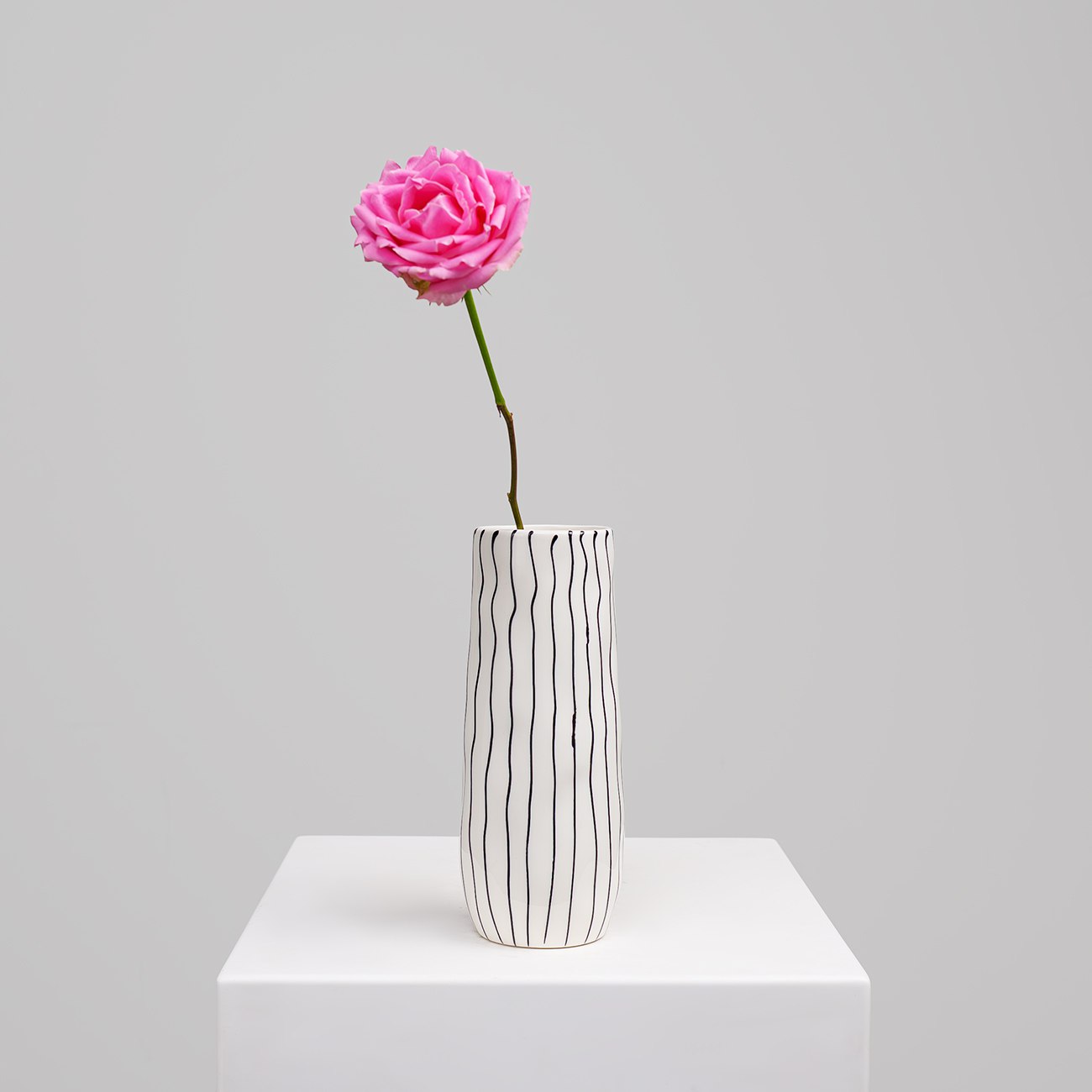 Воплощает сдержанную элегантность в своем минималистическом дизайне. Белое основание, украшенное черными линиями, обеспечивает идеальную основу для ярких цветочных композиций. Эта ваза не только дополняет, но и подчеркивает естественную красоту каждого букета, придавая вашему дому атмосферу современного искусства.