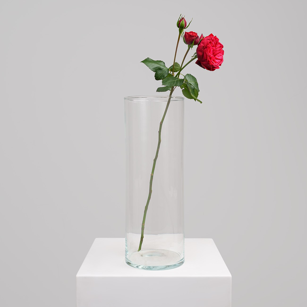 Олицетворяет минимализм и современный стиль. Ее цилиндрическая форма и абсолютная прозрачность создают идеальное обрамление букета, подчеркивая его цвет и свежесть.