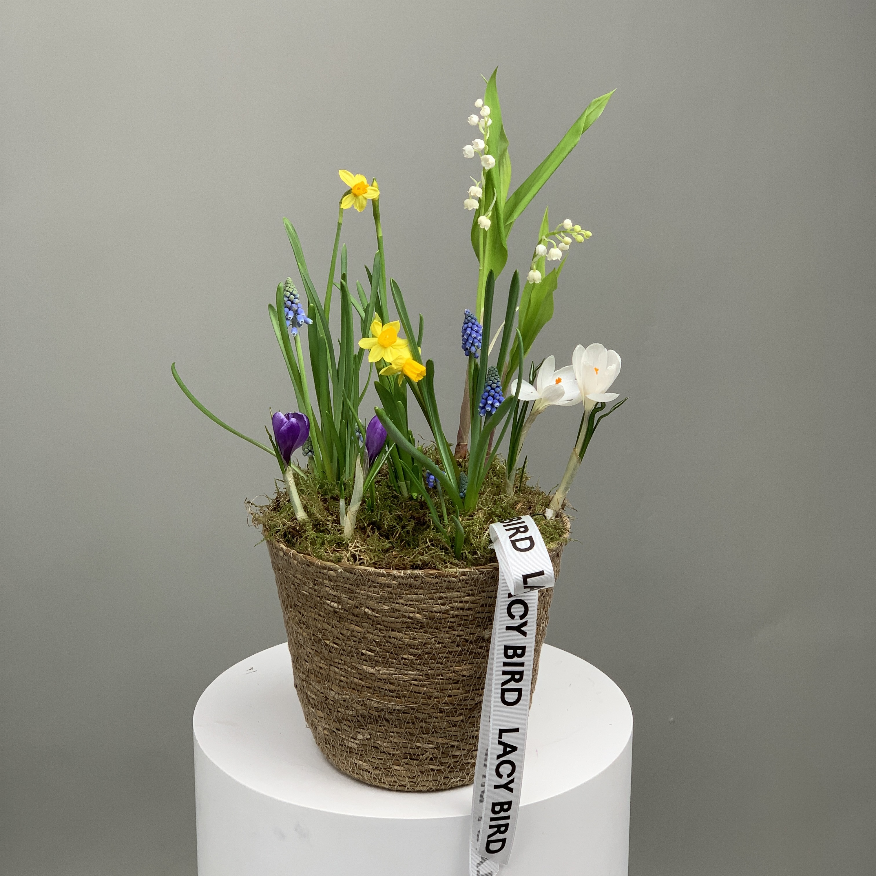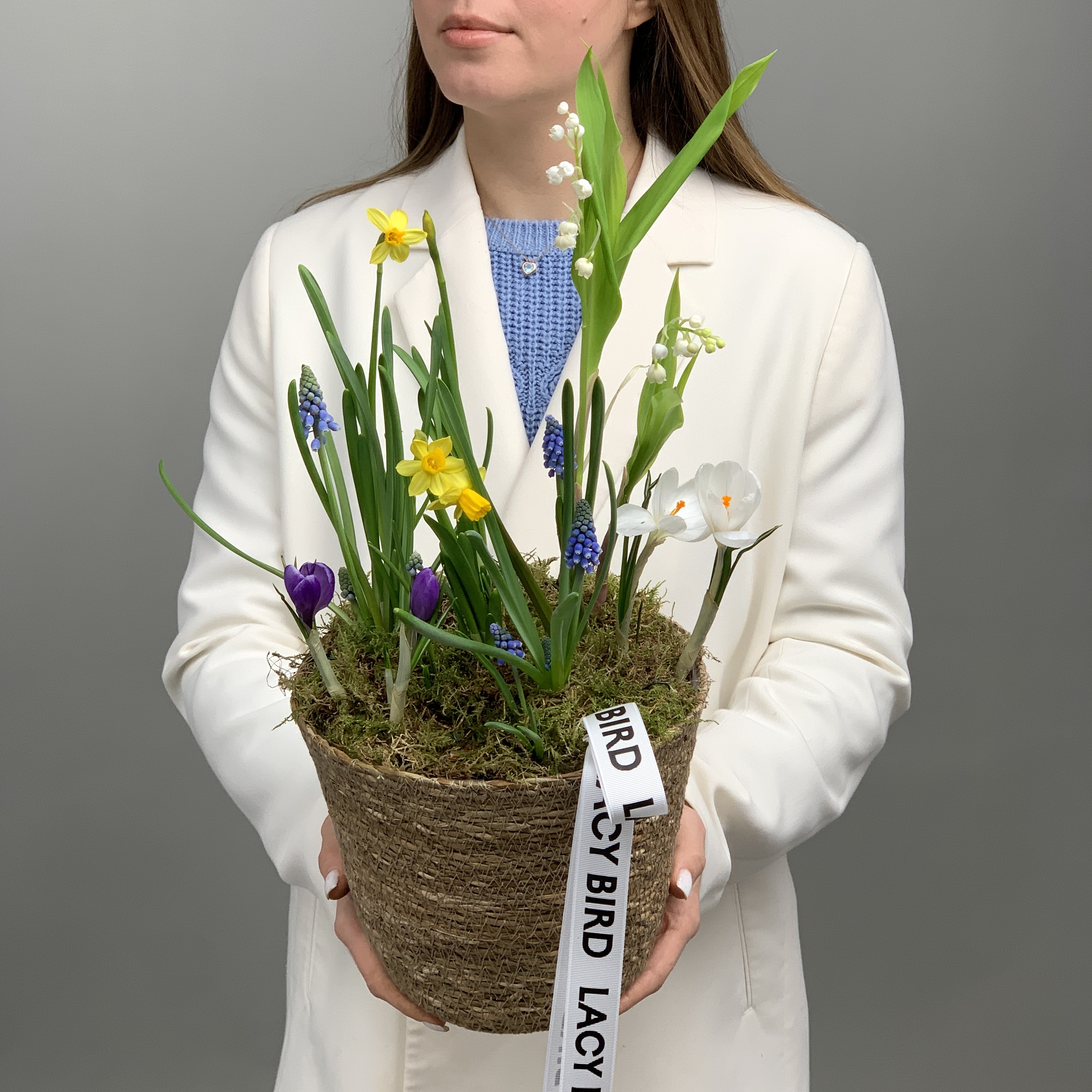Свежие цветы от Lacy Bird доставляются в фирменной упаковке, которую необходимо снять при установке в вазу. Не срезайте ленту, связывающую букет для сохранения формы.