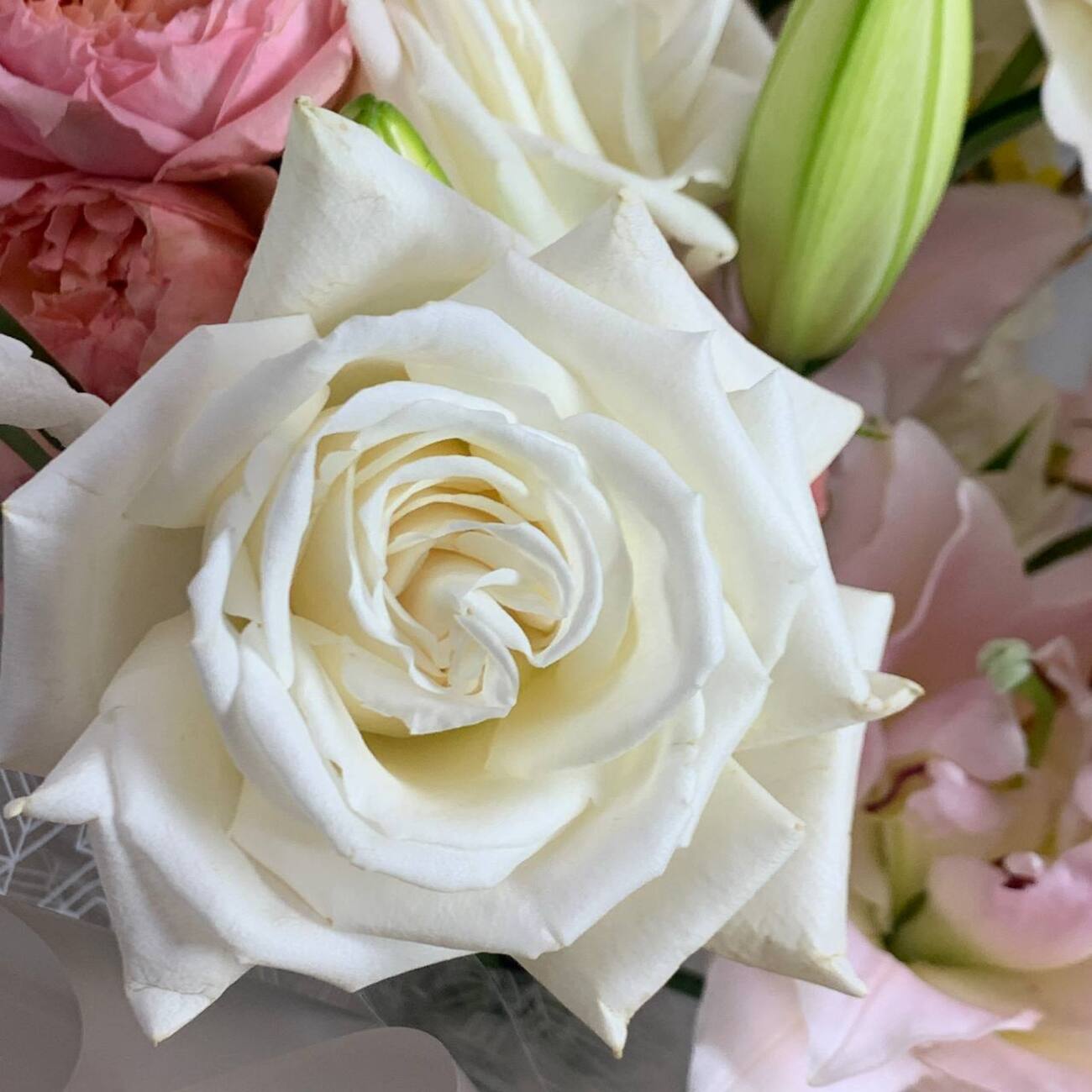 Свежие цветы от Lacy Bird доставляются в фирменной упаковке, которую необходимо снять при установке в вазу. Не срезайте ленту, связывающую букет для сохранения формы.